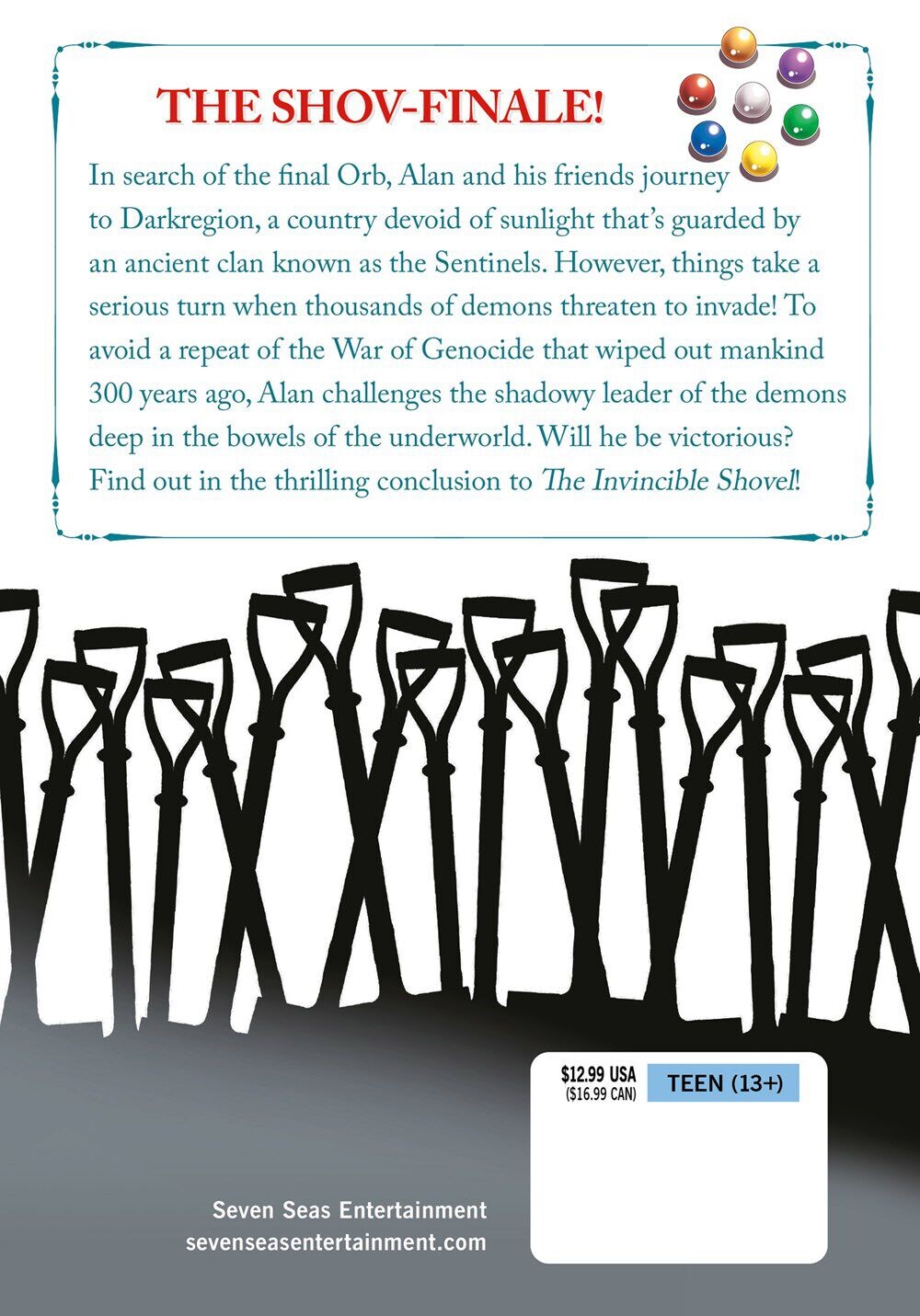 В поисках последней сферы Алан и его друзья отправляются в Темный регион, страну, лишенную солнечного света, которую охраняет древний клан, известный как Стражи. Однако все принимает серьезный оборот, когда тысячи демонов угрожают вторжением! Чтобы избежать повторения Войны геноцида, которая уничтожила человечество 300 лет назад, Алан бросает вызов темному лидеру демонов глубоко в недрах подземного мира. Одержит ли он победу? Узнайте в захватывающем заключении The Invincible Shovel!