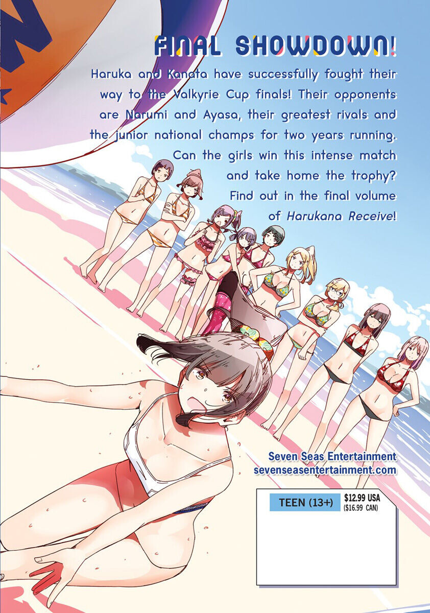Харука и Каната успешно пробились в финал Кубка Валькирии! Их соперники — Наруми и Аяса, их главные соперницы и чемпионы страны среди юниоров в течение двух лет подряд. Смогут ли девушки выиграть этот напряженный матч и забрать домой трофей? Узнайте в последнем томе Harukana Receive!