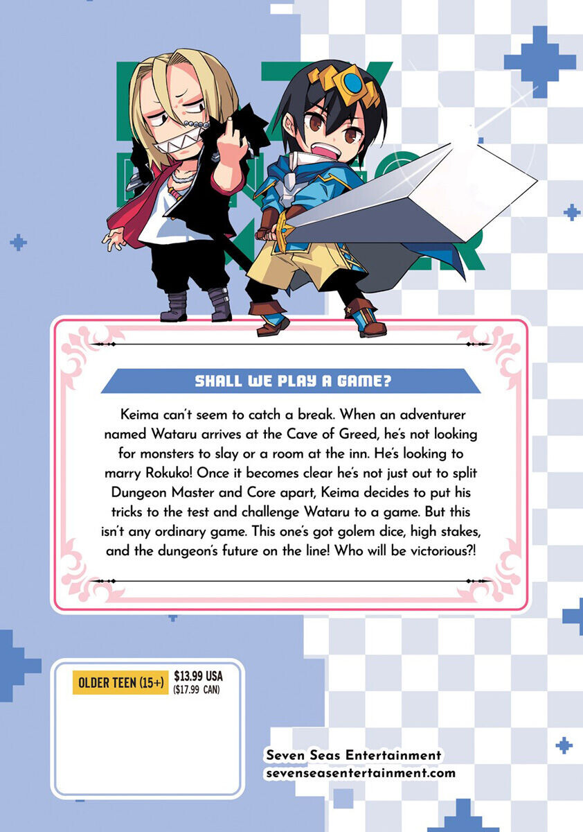 Кейма, похоже, не может найти себе передышку. Когда искатель приключений по имени Ватару прибывает в Пещеру Жадности, он не ищет монстров для убийства или комнату в гостинице. Он хочет жениться на Рокуко! Как только становится ясно, что он не просто хочет разделить Dungeon Master и Core, Кейма решает проверить свои трюки и бросить вызов Ватару в игре. Но это не обычная игра. В ней есть кости голема, высокие ставки и будущее подземелья на кону! Кто победит?!