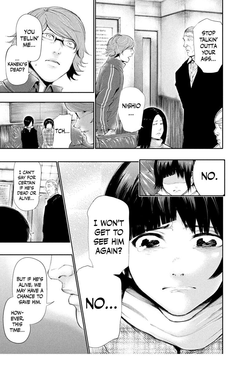 Канеки схвачен и подвергнут пыткам Ямори, одним из самых садистских членов организации Дерева Аогири. Чтобы пережить допрос, Канеки придется наконец сдаться гулю внутри себя, но если он это сделает, это изменит его навсегда и отдалит его еще дальше от человека.
