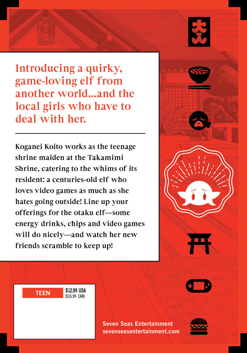 Коганей Които работает юной жрицей в храме Такамими, удовлетворяя прихоти его обитательницы: многовековой эльфийки, которая любит видеоигры так же сильно, как ненавидит выходить на улицу! Выстраивайте свои подношения для эльфа-отаку — энергетические напитки, чипсы и видеоигры вполне подойдут — и наблюдайте, как ее новые друзья изо всех сил стараются не отставать!