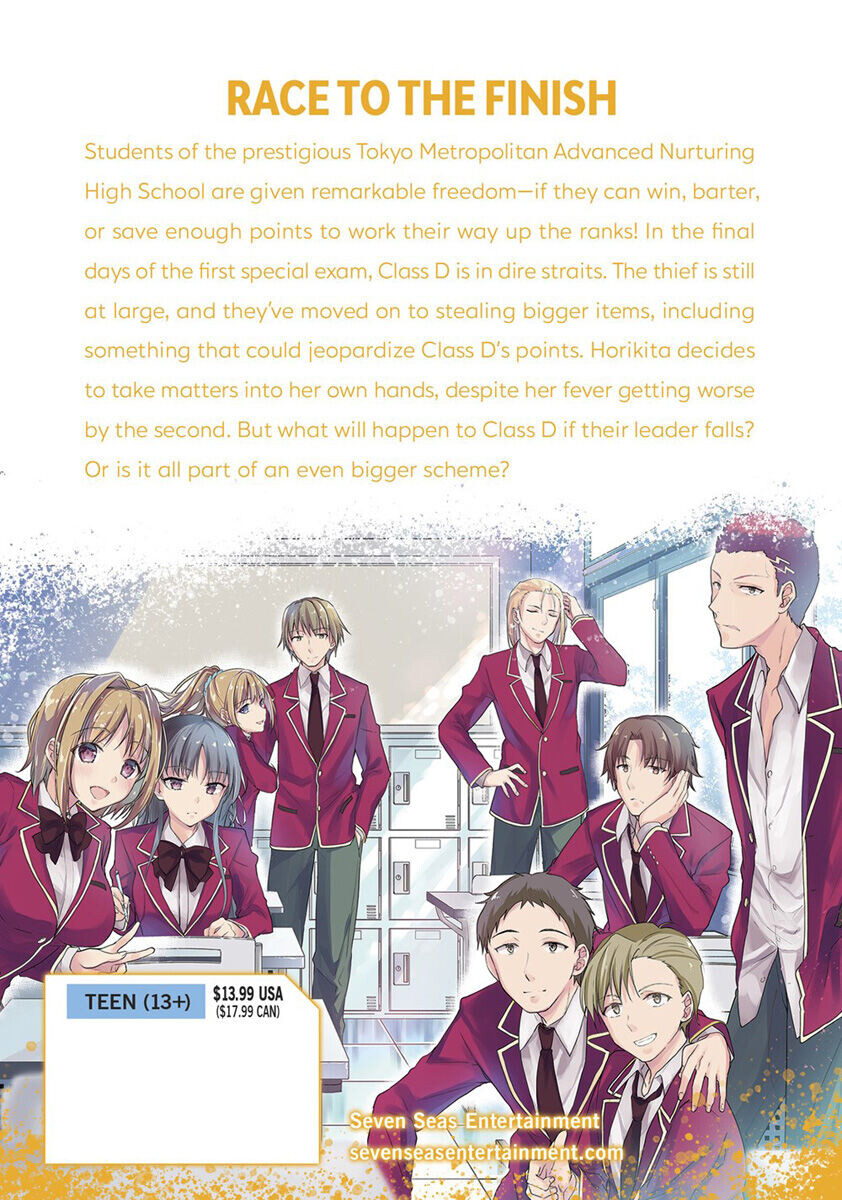 Ученикам престижной Токийской столичной высшей школы передового воспитания предоставляется замечательная свобода — если они могут выиграть, обменять или накопить достаточно баллов, чтобы подняться по службе! В последние дни первого специального экзамена класс D находится в отчаянном положении. Вор все еще на свободе, и они перешли к краже более крупных предметов, включая то, что может поставить под угрозу баллы класса D. Хорикита решает взять дело в свои руки, несмотря на то, что ее лихорадка с каждой секундой ухудшается. Но что случится с классом D, если их лидер падет? Или все это часть еще более масштабной схемы?