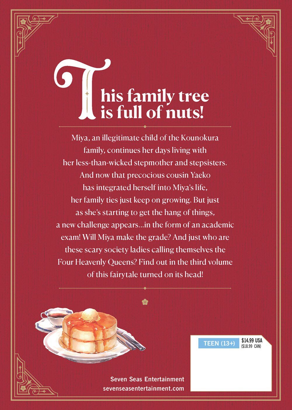 Мия, незаконнорожденная дочь семьи Коунокура, продолжает жить со своей не такой уж злой мачехой и сводными сестрами. И теперь, когда ее не по годам развитая кузина Яэко влилась в повседневную жизнь Мии, ее семейные связи продолжают крепнуть. Но как только она начинает вникать во все тонкости, появляется новое испытание... в виде академического экзамена! Справится ли Мия с оценкой? И кто эти страшные светские дамы, называющие себя Четырьмя Небесными Королевами? Узнайте в третьем томе этой сказки, перевернутой с ног на голову!