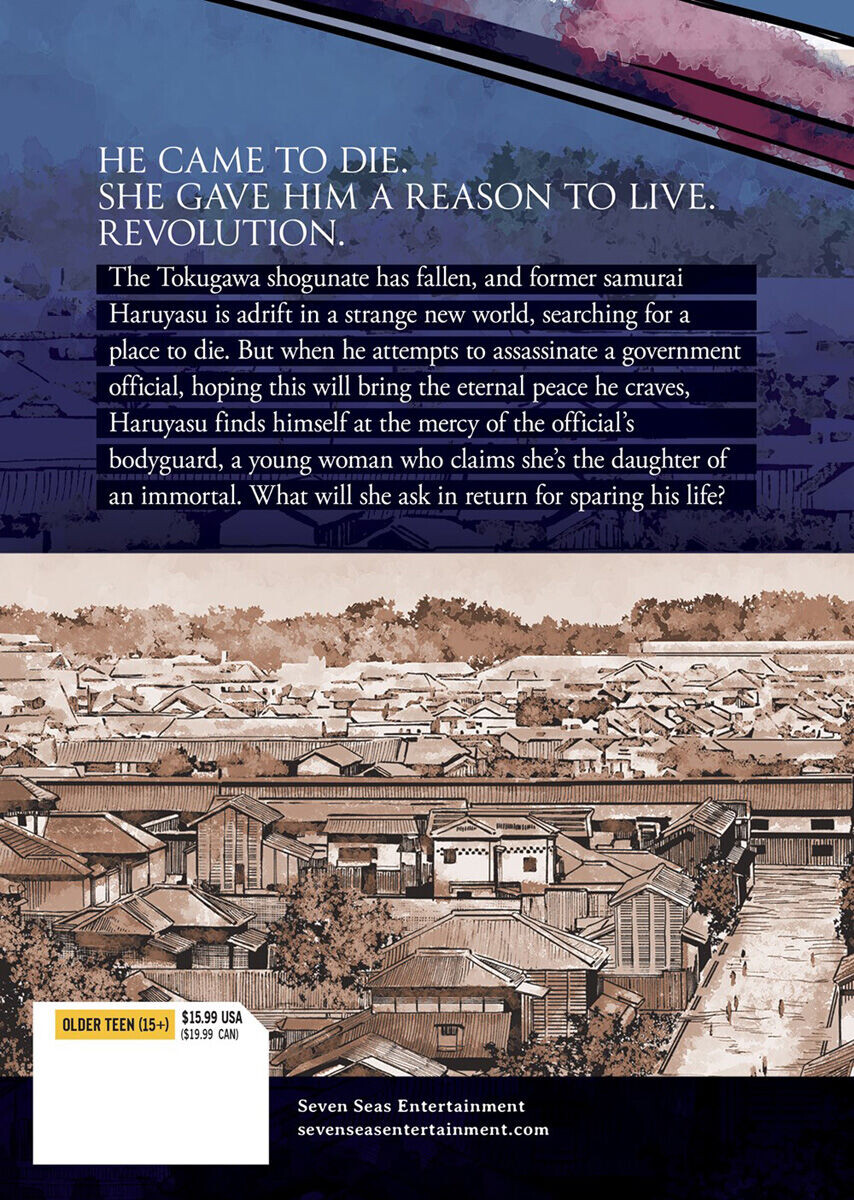 Сёгунат Токугава пал, и бывший самурай Харуясу дрейфует в странном новом мире, ища место, где он сможет умереть. Но когда он пытается убить правительственного чиновника, надеясь, что это принесет ему вечный мир, которого он жаждет, Харуясу оказывается во власти телохранителя чиновника, молодой женщины, которая утверждает, что она дочь бессмертного. Что она попросит взамен на сохранение его жизни?