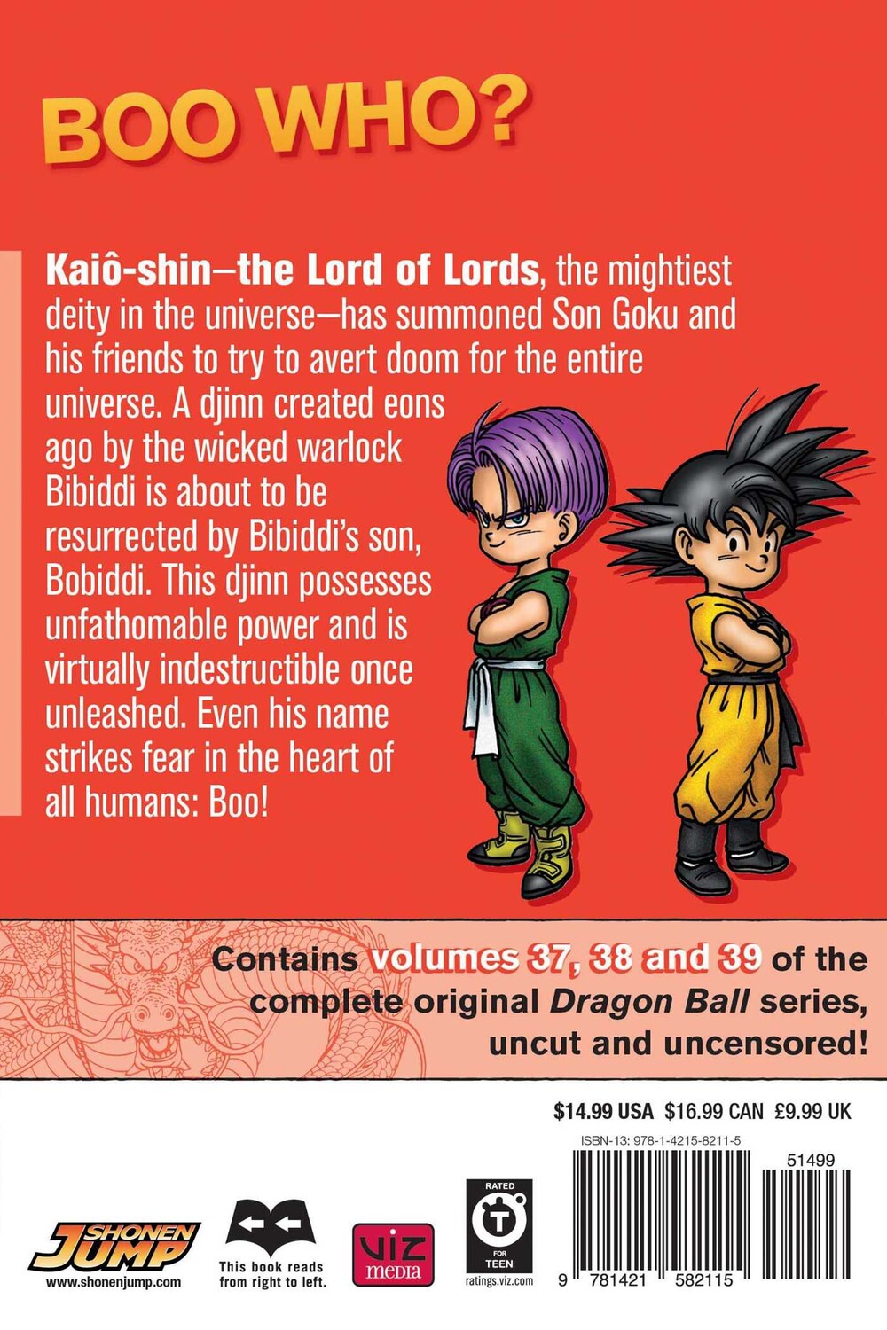 Кайо-син — Владыка Владык, самое могущественное божество во вселенной — призвал Сон Гоку и его друзей, чтобы попытаться предотвратить гибель всей вселенной. Джинн, созданный много веков назад злым колдуном Бибидди, вот-вот будет воскрешен сыном Бибидди, Бобидди. Джинн обладает непостижимой силой и практически неуязвим после освобождения. Даже его имя вселяет страх в сердца всех людей: Бу!