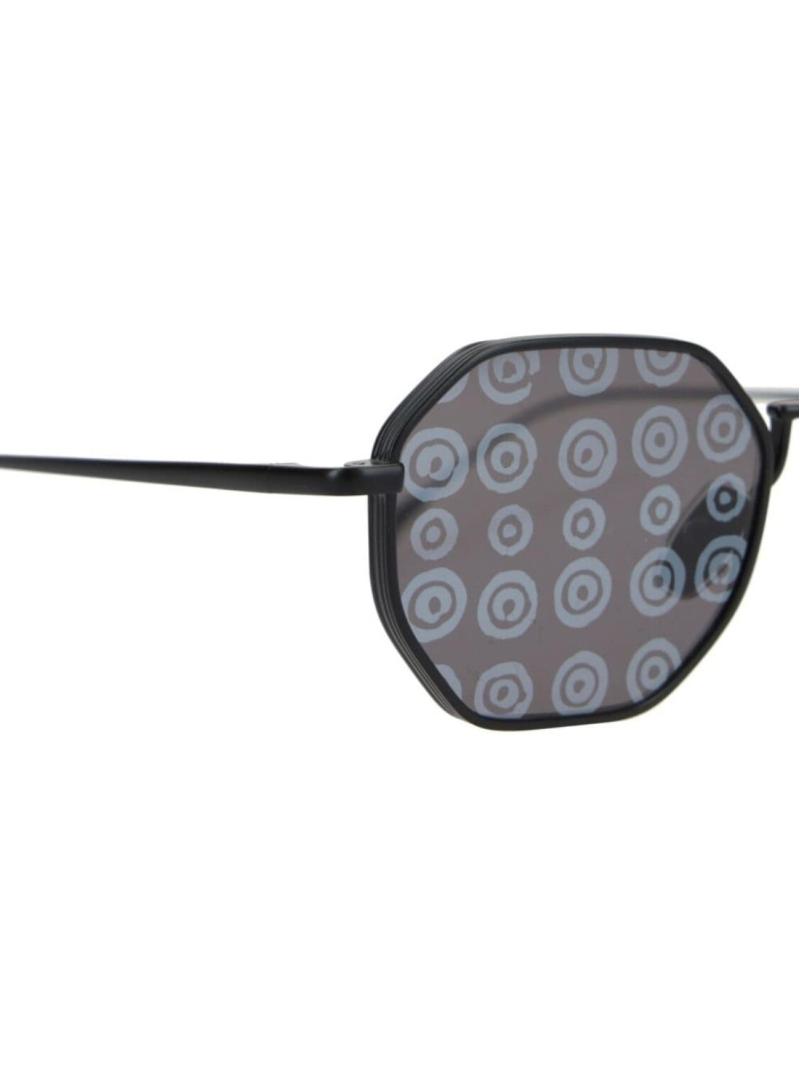 Дужки из черной стали с гравировкой логотипа, наклейка на линзу, круглый мотив, геометрическая оправа, линзы с защитой от УФ-излучения, носоупоры, прямые дужки, изогнутые кончики. Эти очки поставляются с защитным футляром.