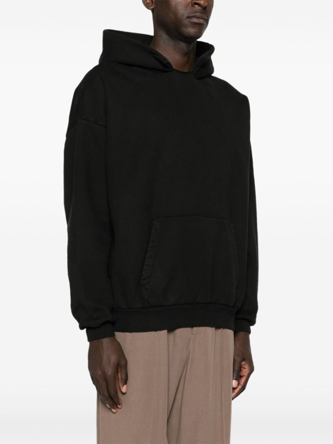 Черный, хлопок, классический капюшон, круглый вырез, приспущенные плечи, длинные рукава, подол и манжеты в рубчик, накладной карман спереди, флисовая подкладка, Это унисекс-модель. Обратите внимание, что для нее используется мужская размерная сетка.