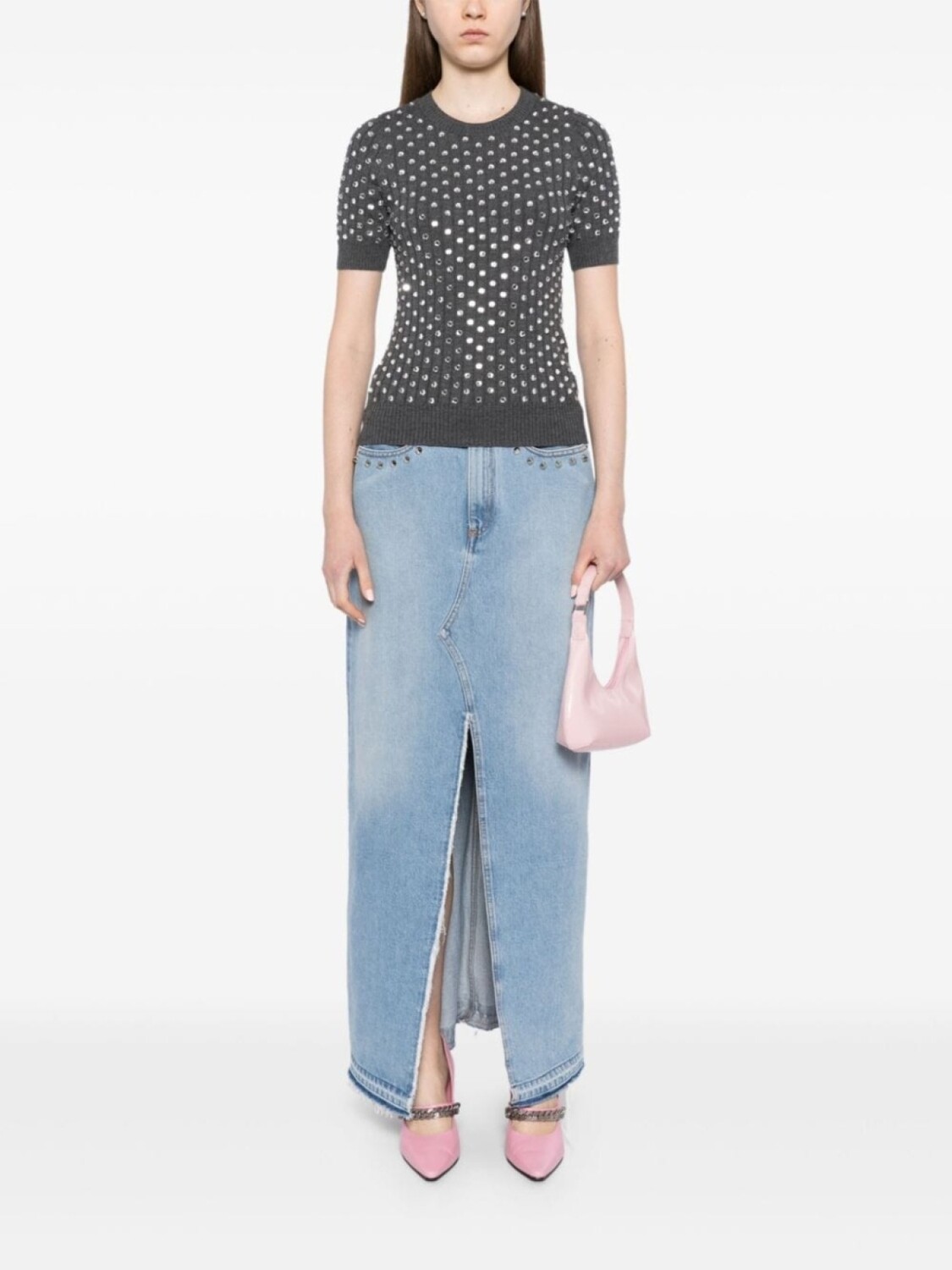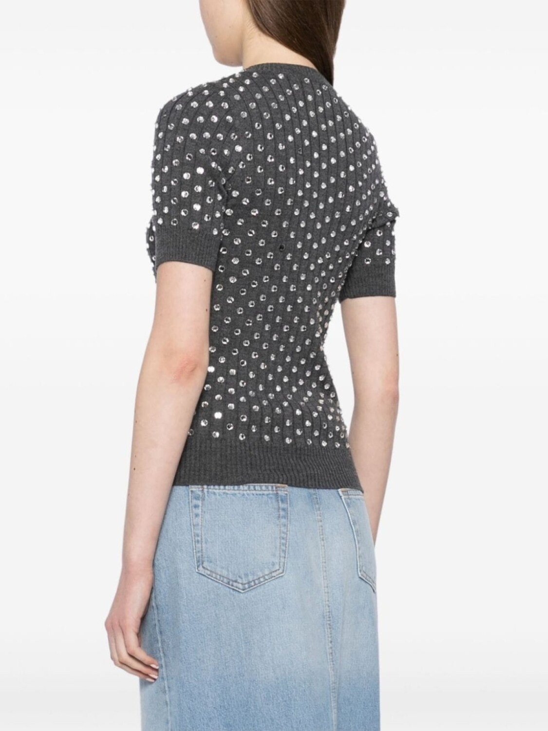Nº21 шерстяной свитер, украшенный кристаллами, серый
