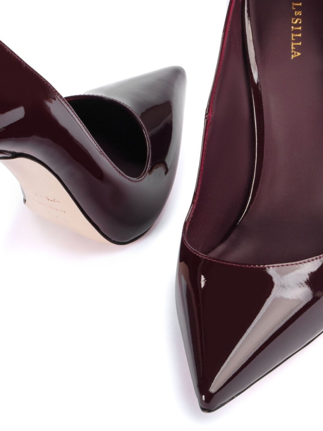 Темно-красный, кожа, лакированная отделка, заостренный носок, без застежки, кожаная стелька с логотипом, каблук на высокой шпильке, кожаная подошва