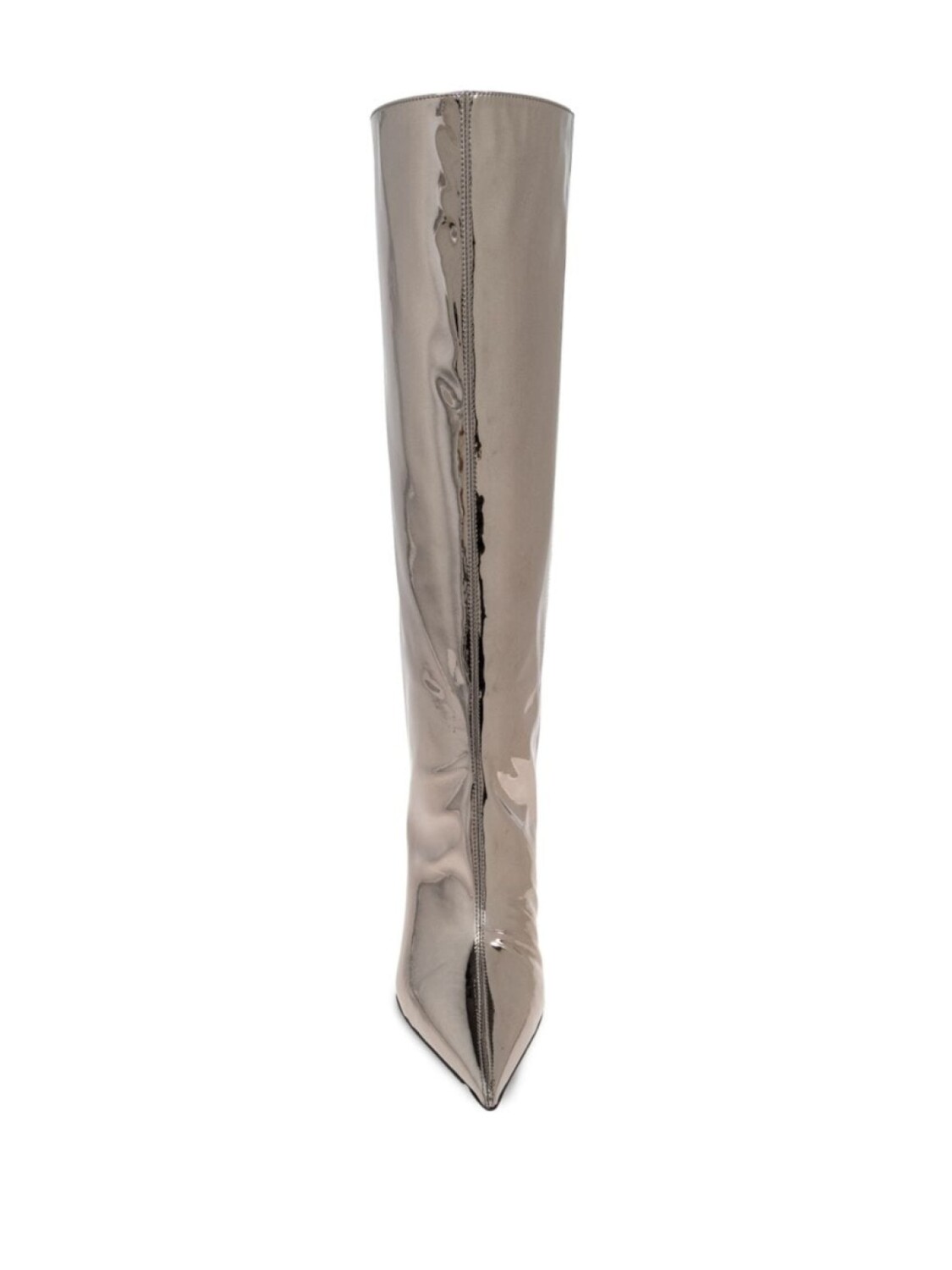 Серебристая кожа лакированная отделка металлический эффект острый нос высокая шпилька резиновая подошва до колена
