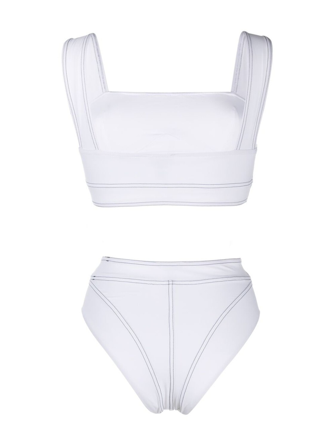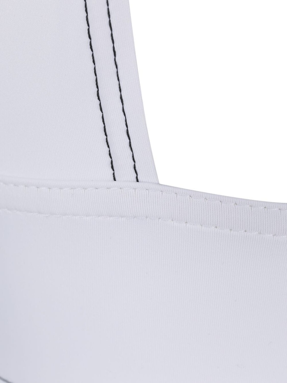 Контрастная строчка, завышенная талия, высокий вырез и цельная подкладка. Цвет: белый. Пожалуйста, примеряйте купальники и плавки только поверх собственного белья.