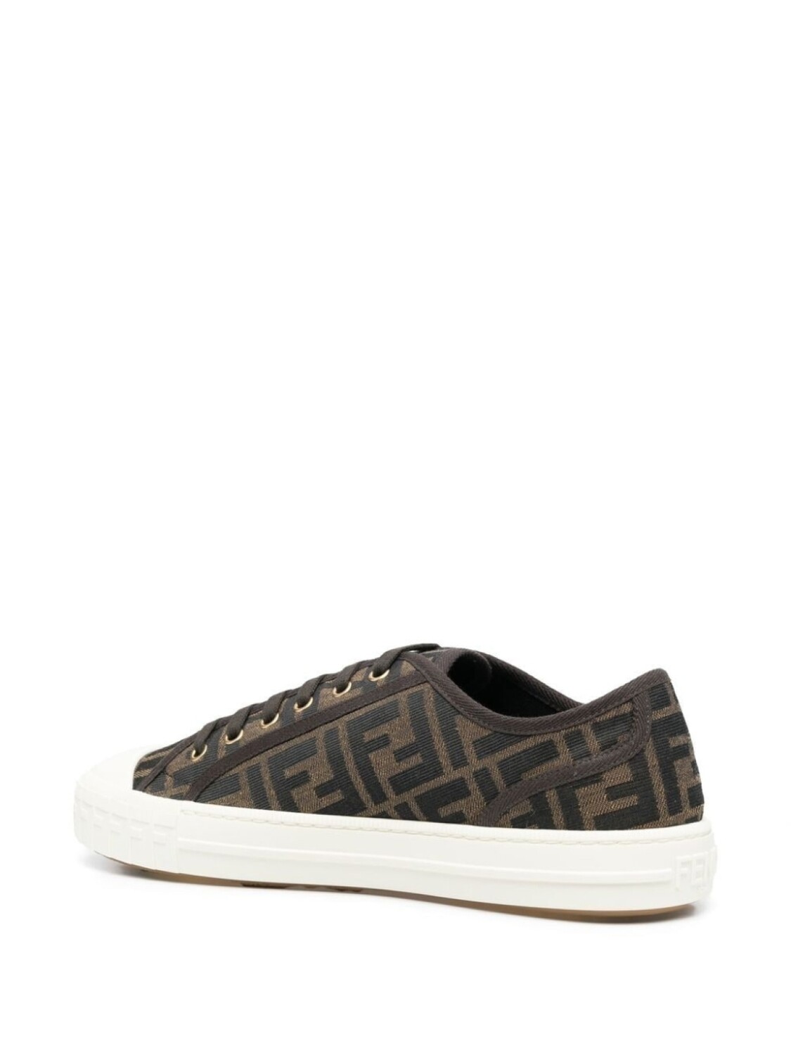 Шоколадный, принт с логотипом FF, жаккардовый логотип, стелька с логотипом, закругленный носок, шнуровка спереди и плоская резиновая подошва.