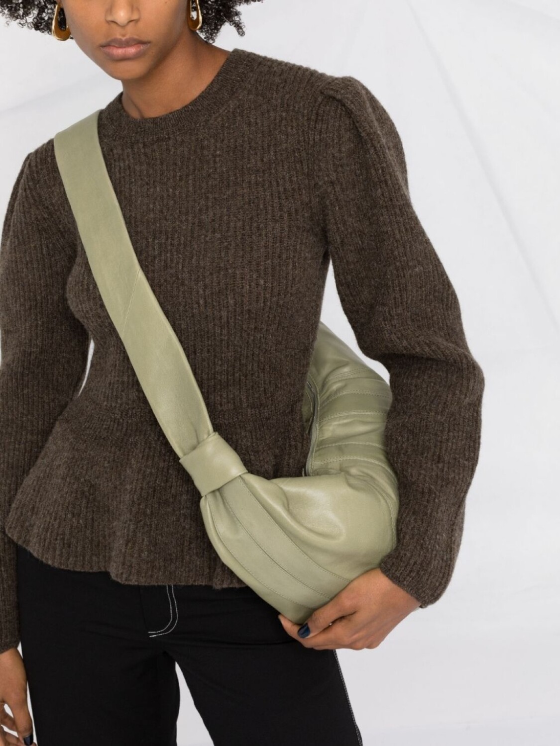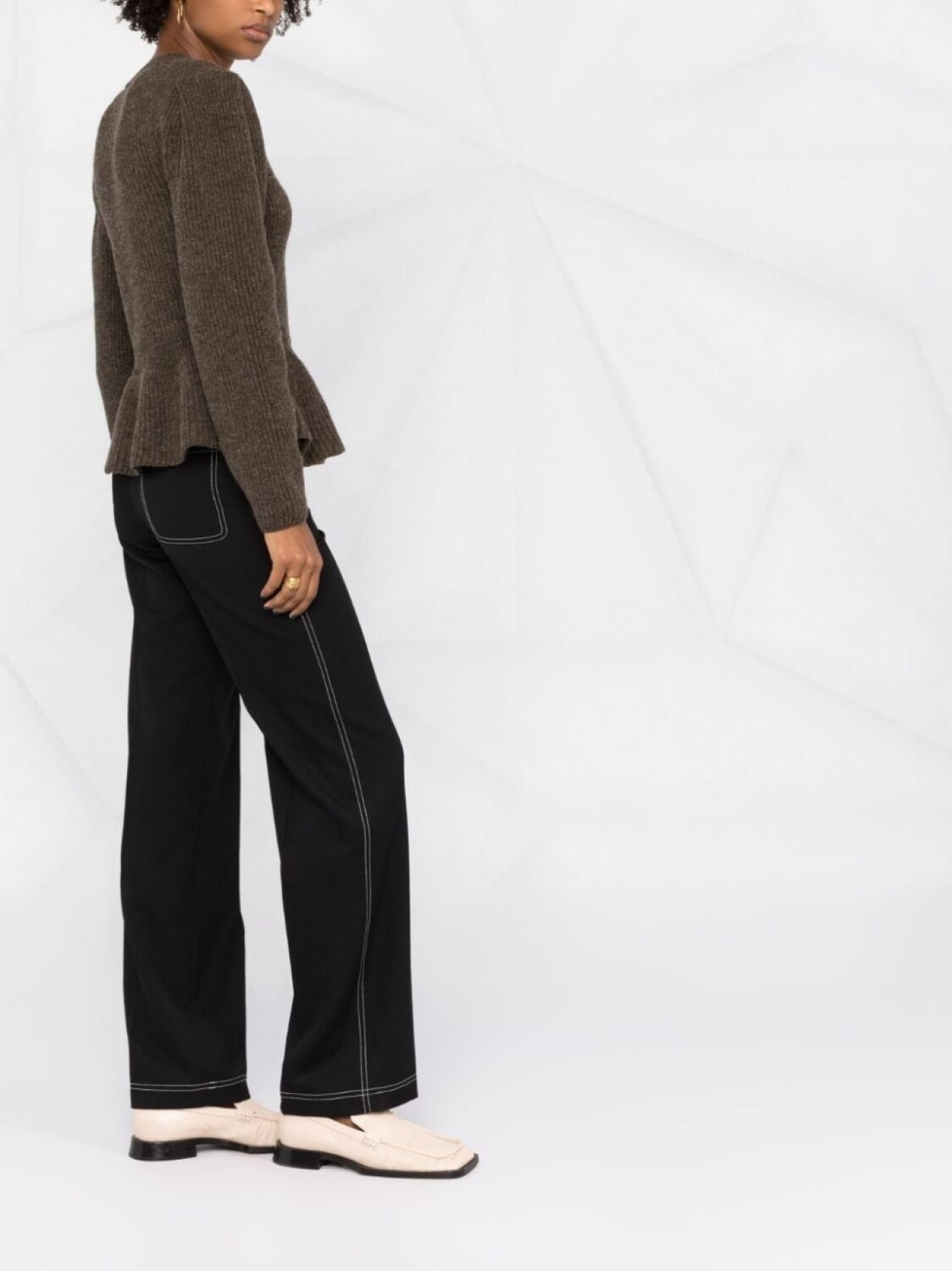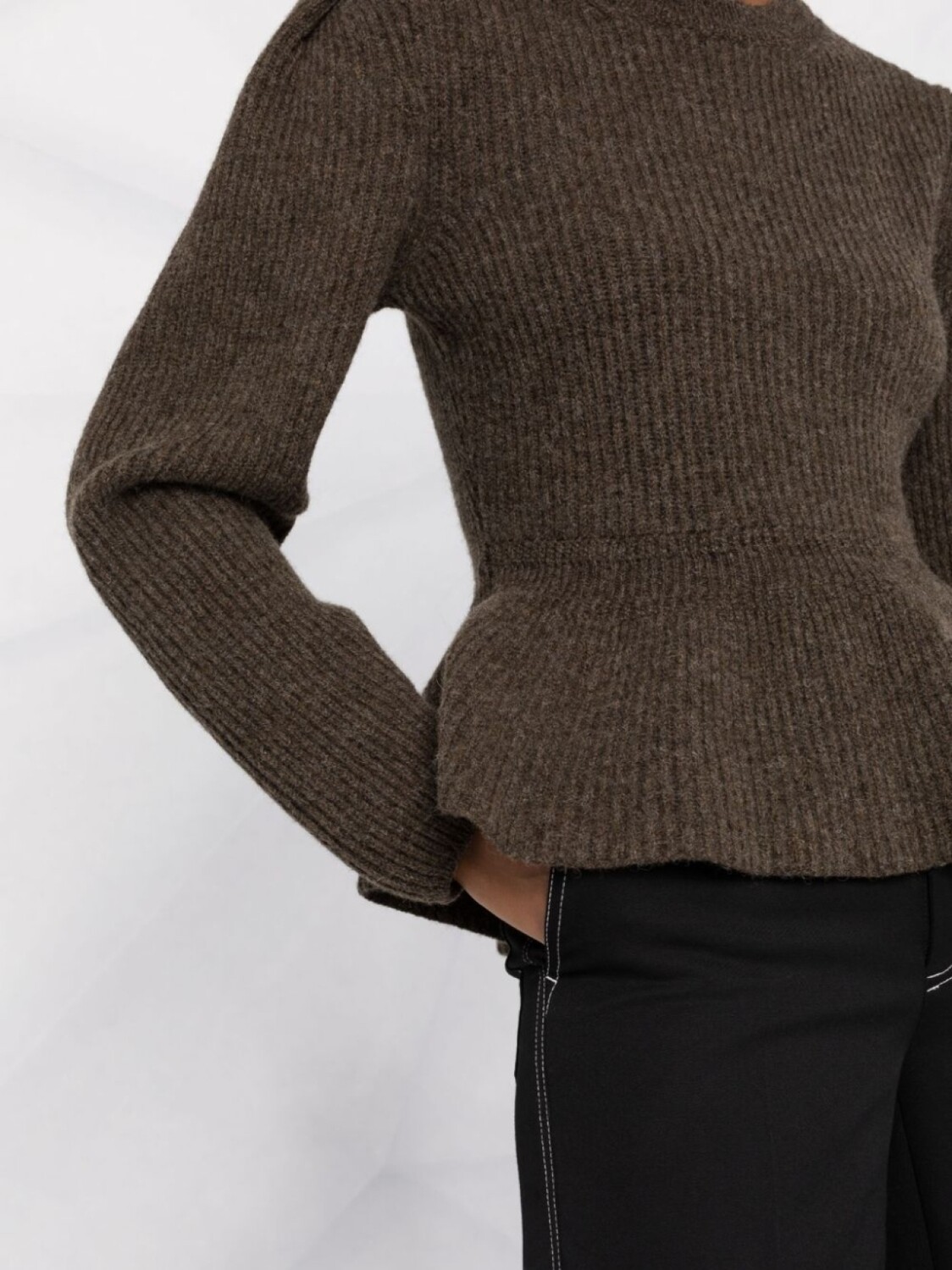 LEMAIRE джемпер в рубчик с баской, коричневый 112 365₽
