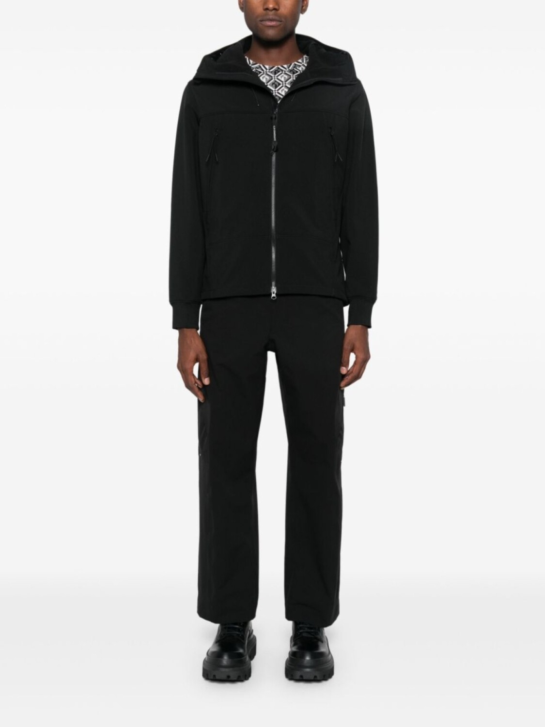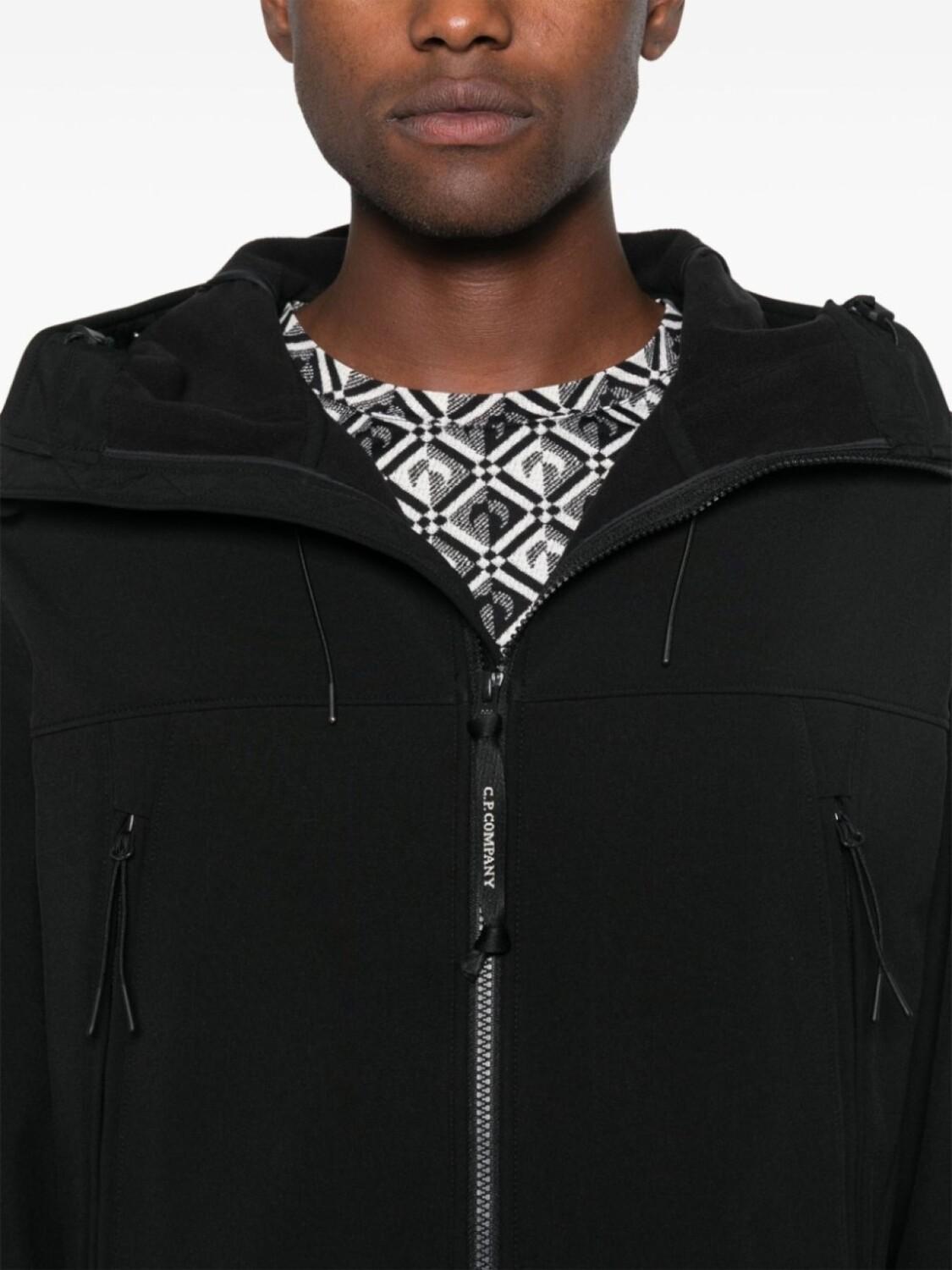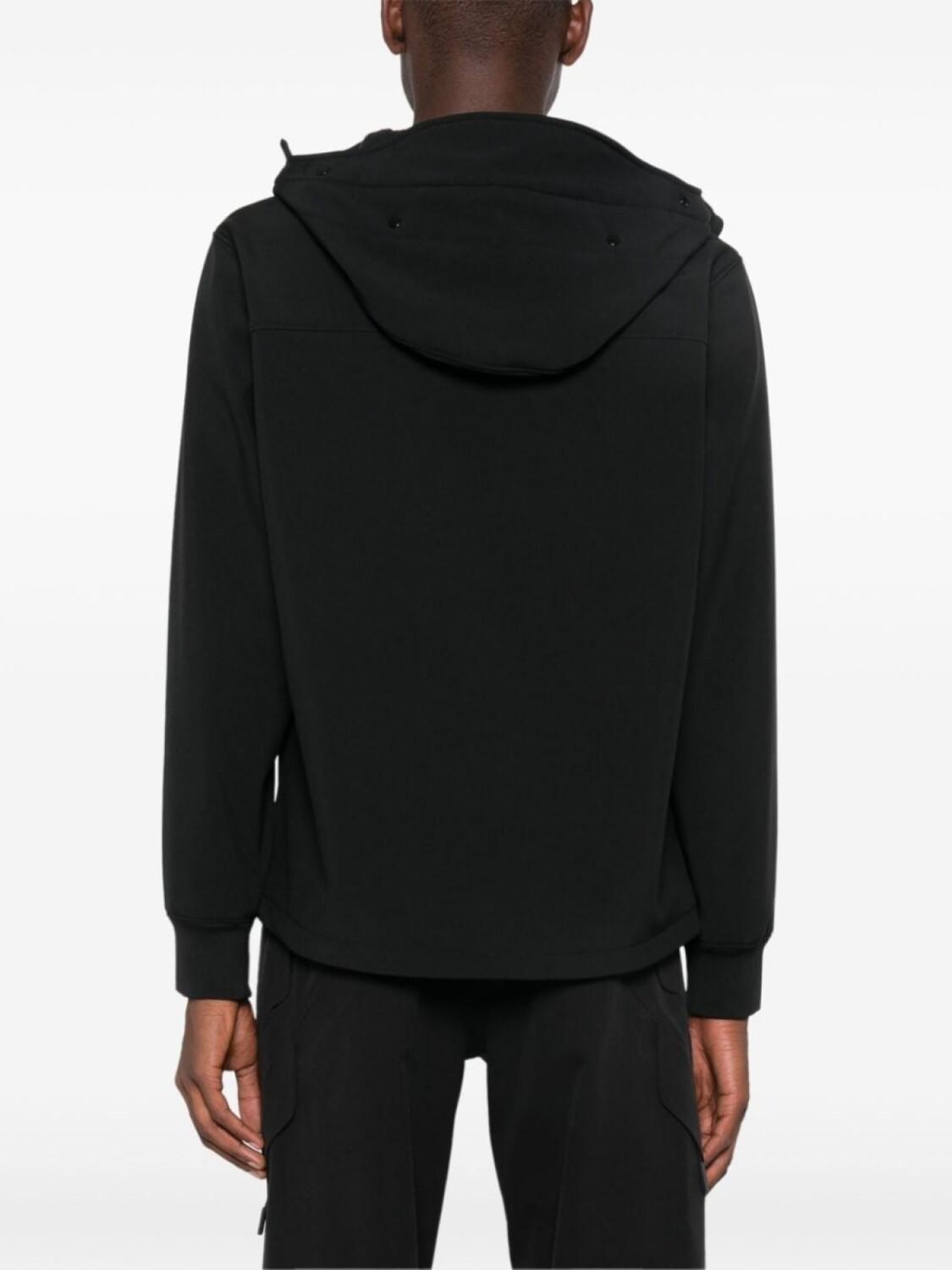 Черный, плотный внешний материал, эластичный материал, ветронепроницаемый материал, защитная обработка материала, высокий воротник, затягивающийся на шнурок капюшон, декоративные линзы, карманы на молнии спереди, длинные рукава, манжеты в рубчик, флисовая подкладка, двусторонняя молния спереди, C.P. Company рекомендуют снимать все отстегивающиеся аксессуары перед стиркой.