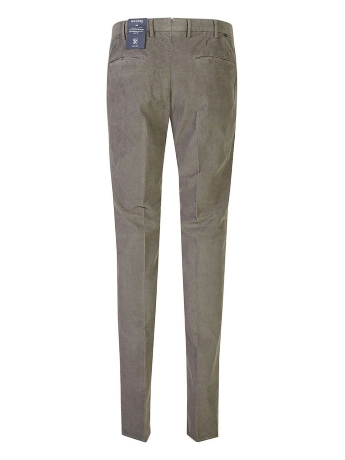 Зелено-серый вельветовый логотип сзади, застежка на пуговицу и молнию спереди, шлевки для ремня, заутюженная складка, два задних прорезных кармана, зауженные штанины
