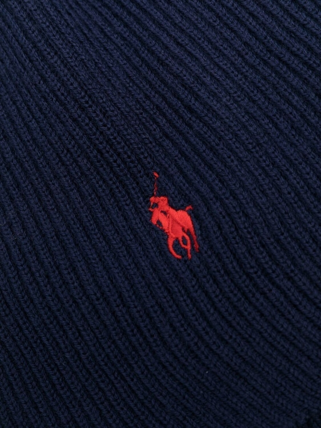 Темно-синий, шерсть, знаковый логотип Polo Pony, трикотаж в рубчик и длинные рукава.
