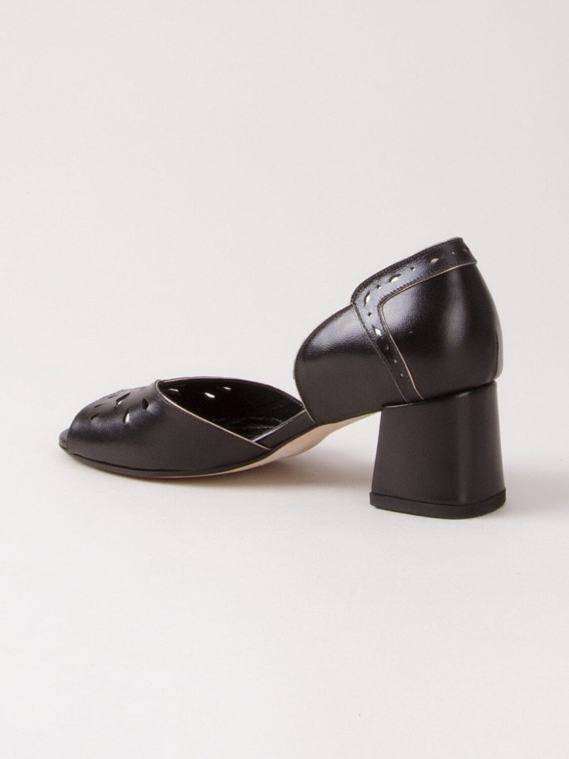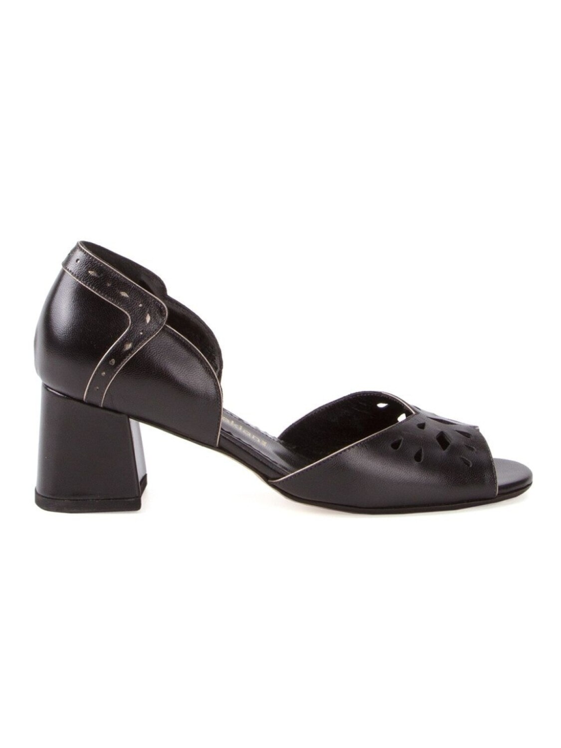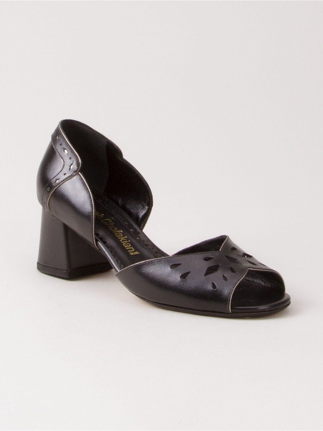 Босоножки на массивном каблуке от Sarah Chofakian. Вырезные детали и массивный каблук средней высоты. Цвет: черный.