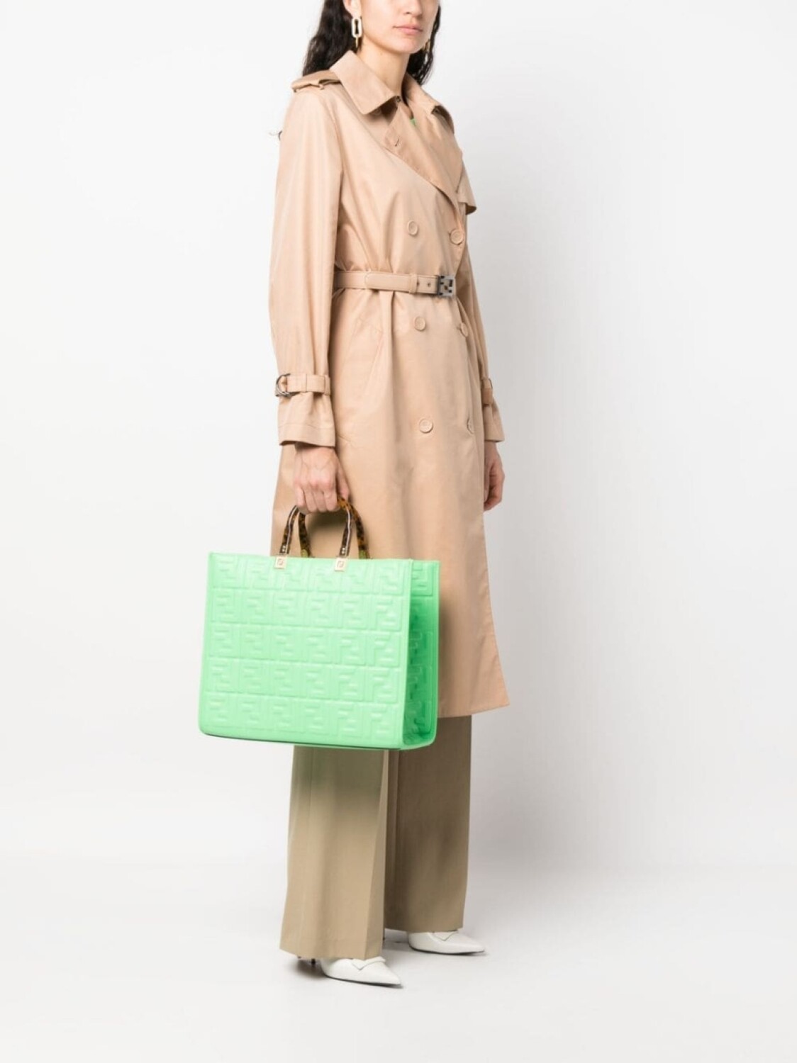 Сумка-тоут FENDI с тисненым логотипом FF, зеленый