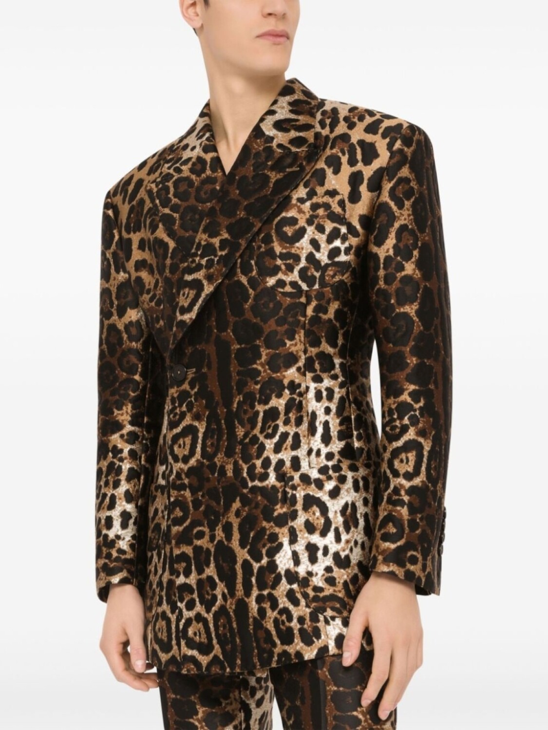 Dolce & Gabbana блейзер из жаккарда с леопардовым узором, коричневый