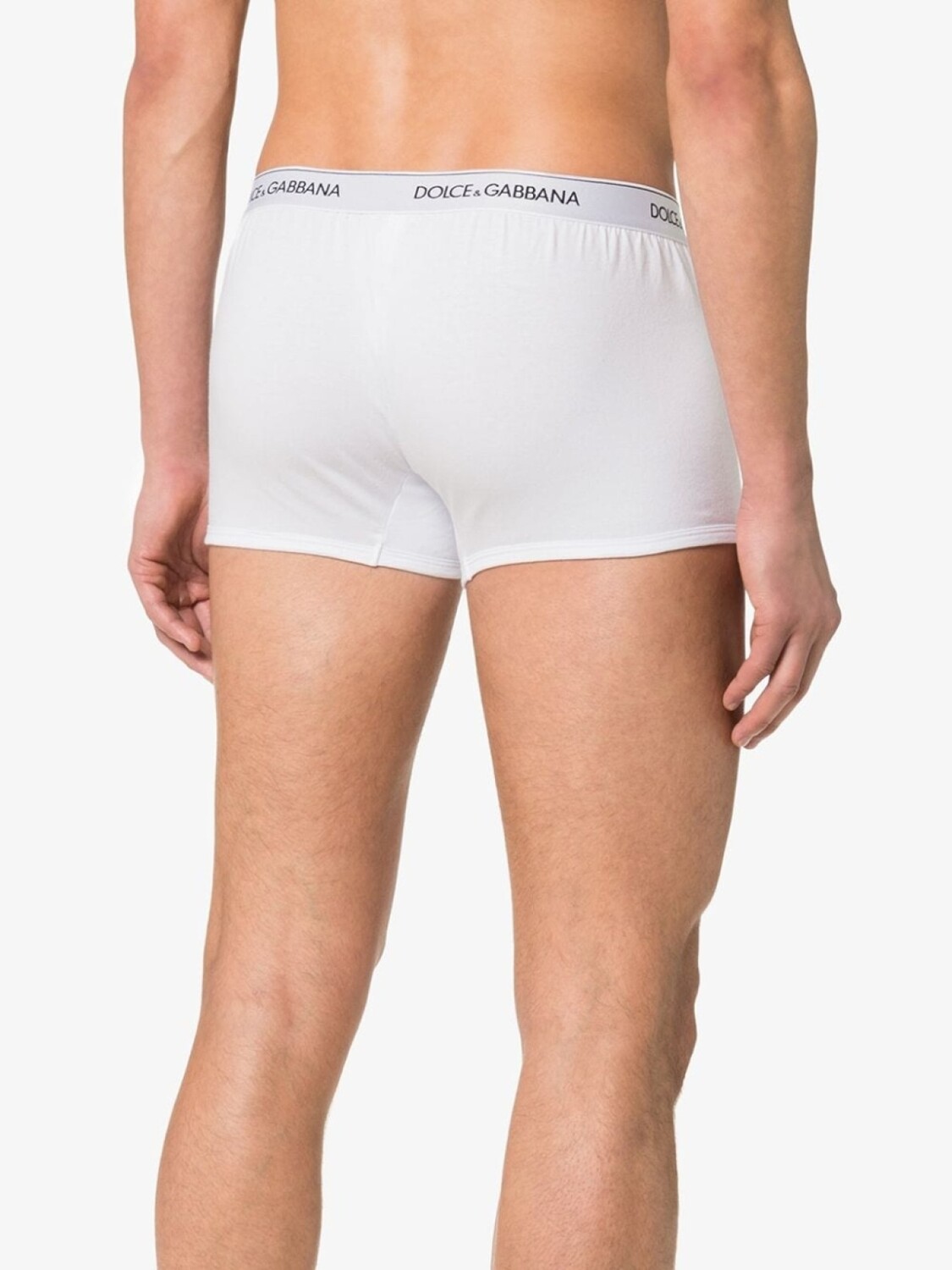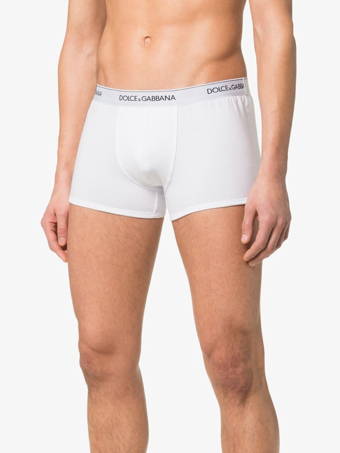 Модели Dolce & Gabbana отличает идеальный крой, продуманный декор и высококачественные материалы. В коллекцию вошли белые хлопковые боксеры с логотипом на поясе от Dolce & Gabbana (Дольче энд Габбана). Эластичный пояс с логотипом. Примерка белья разрешена исключительно поверх собственного.
