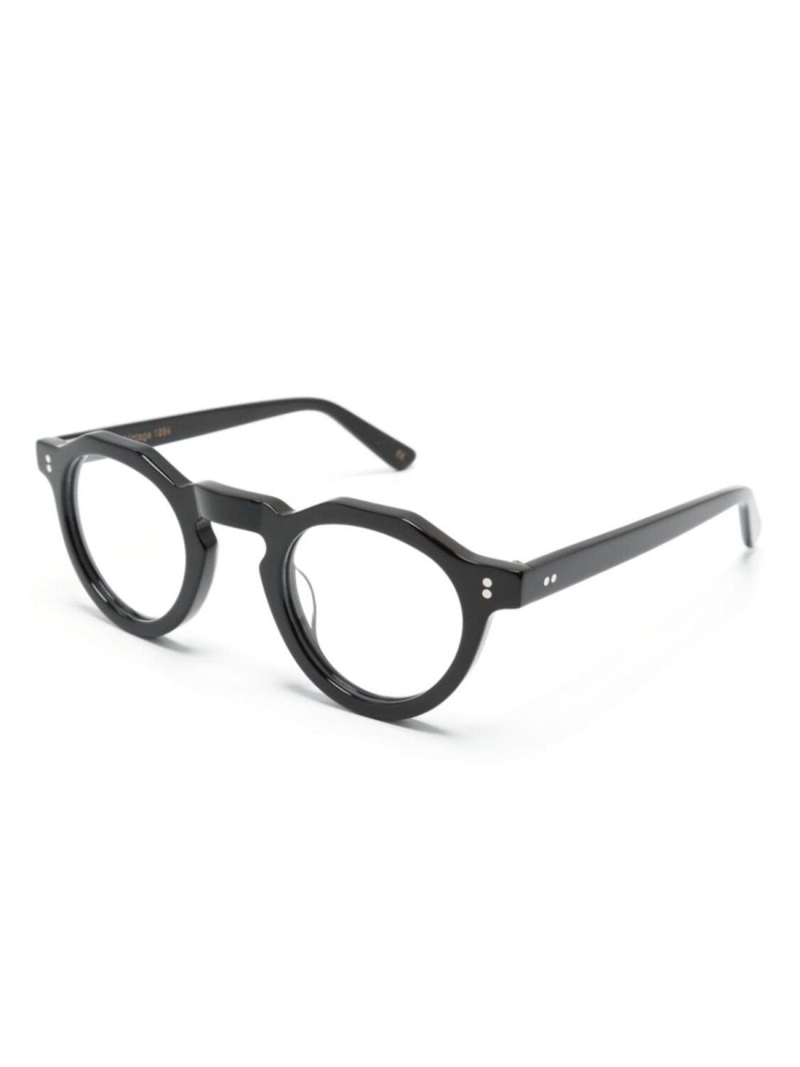 Черный, ацетат, круглая оправа, прозрачные линзы, прямые дужки с закругленными концами, В комплект входит защитный чехол для очков., Обратите внимание, что на FARFETCH продаются оправы с линзами без диоптрий.