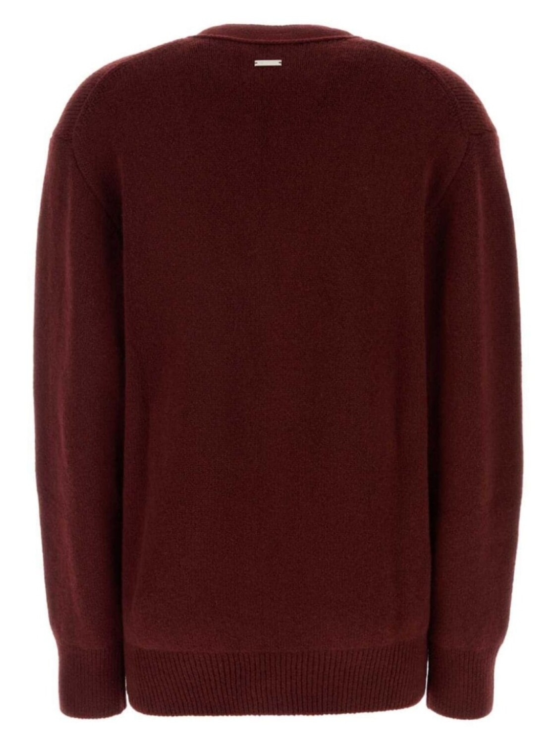 Бордовый кашемировый смесовый материал застежка на пуговицы спереди V-образный вырез спущенное плечо длинные рукава ребристые манжеты и подол
