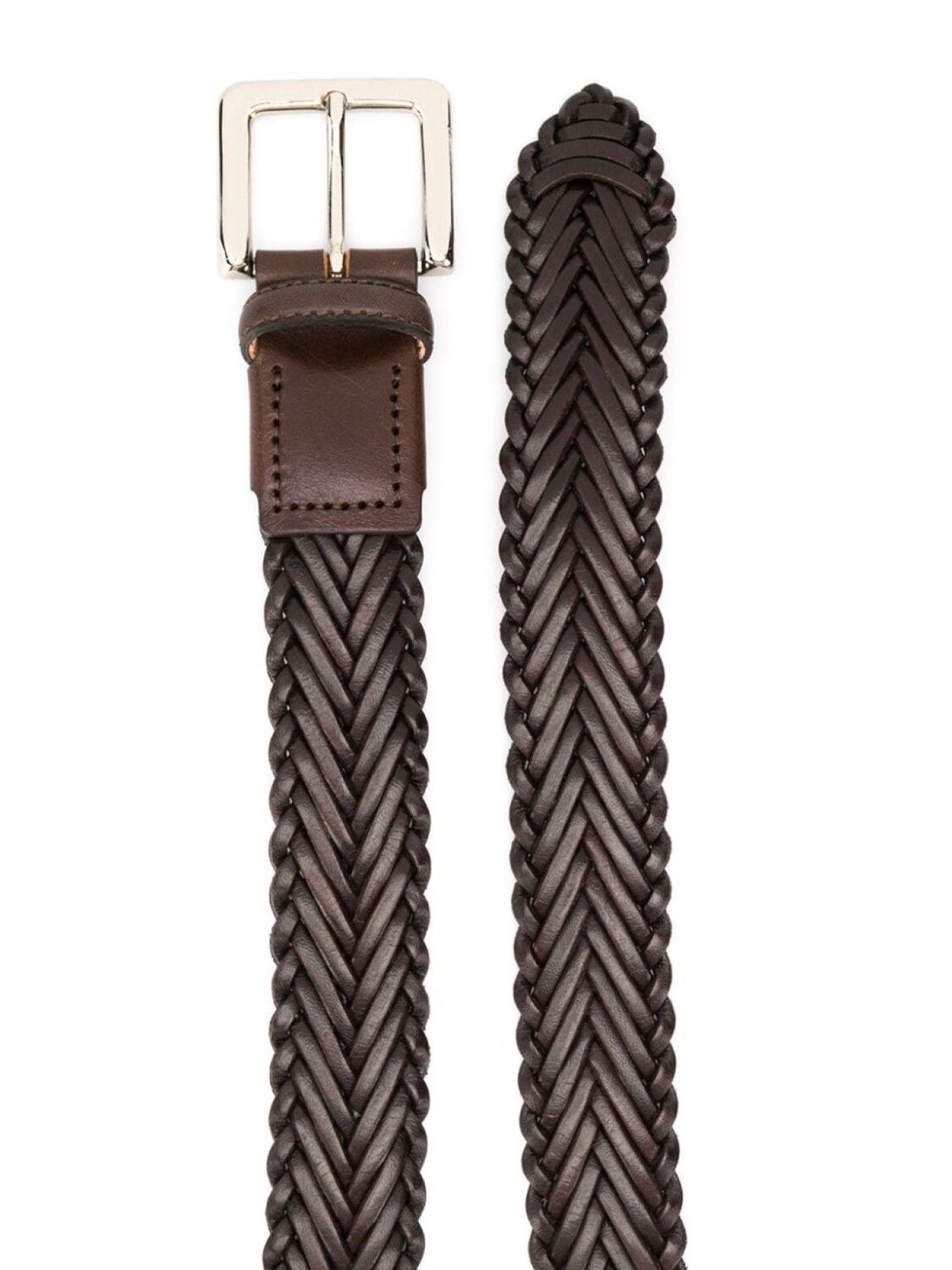 Плетеный ремень с пряжкой от Scarosso. Серебристая фурнитура, стандартная длина и заостренный конец. Цвет: коричневый.