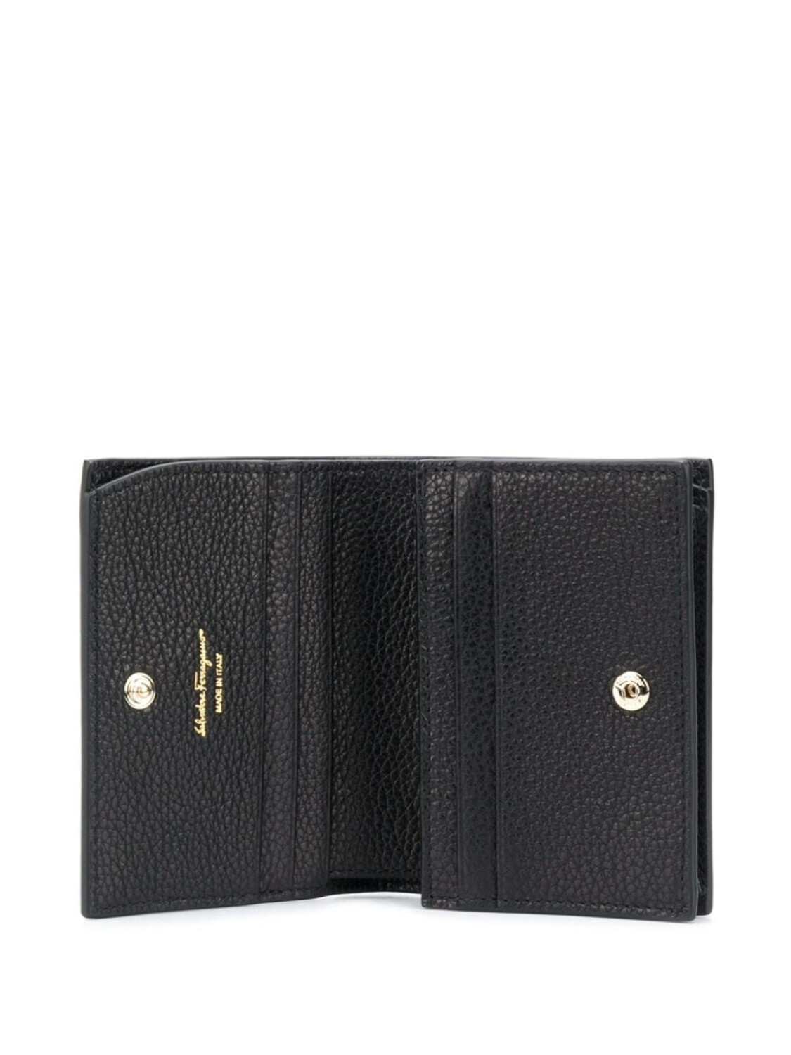 Кошелек из зернистой кожи с декором Gancini от Salvatore Ferragamo (Сальваторе Феррагамо). Тисненая деталь, застежка на кнопку, гравировка и внутренние отделения для карт. Цвет: черный.