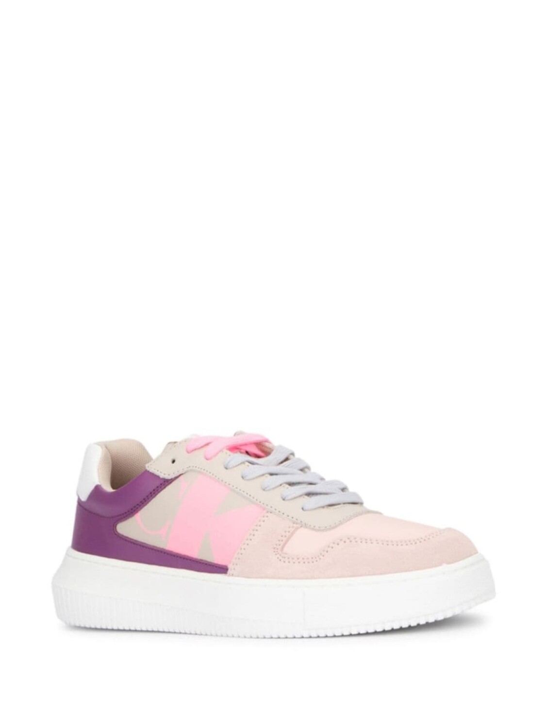 Розовая шнуровка спереди, мягкая щиколотка, круглый носок, боковые панели с логотипом, нашивка с тиснением логотипа сзади, резиновая подошва
