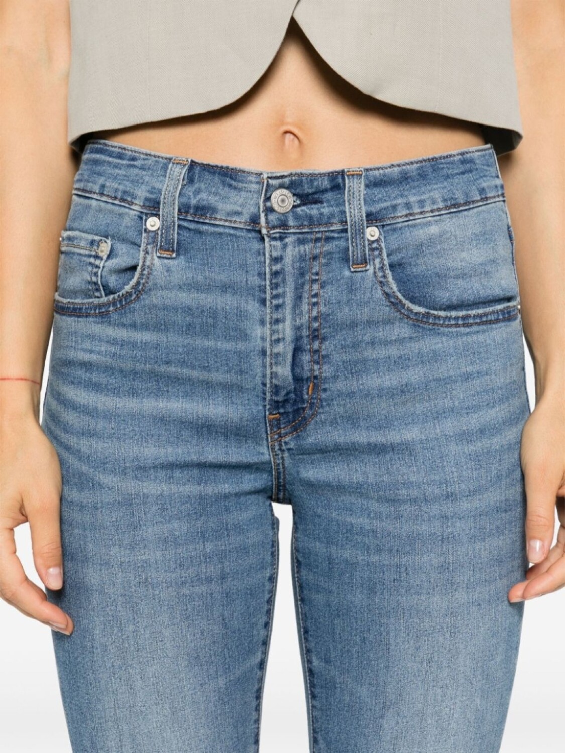 Подробнее о товаре: • индиго • смесовый хлопок • эластичный материал • обработанный деним • эффект потертости • декоративные складки • эффект потертости • контрастная строчка • завышенная талия • петли для ремня • классическая пятикарманная модель • заклепки • высота по щиколотку • нашивка с логотипом сзади • бирка с логотипом сзади • облегающий крой • потайная застежка на молнии и пуговицах