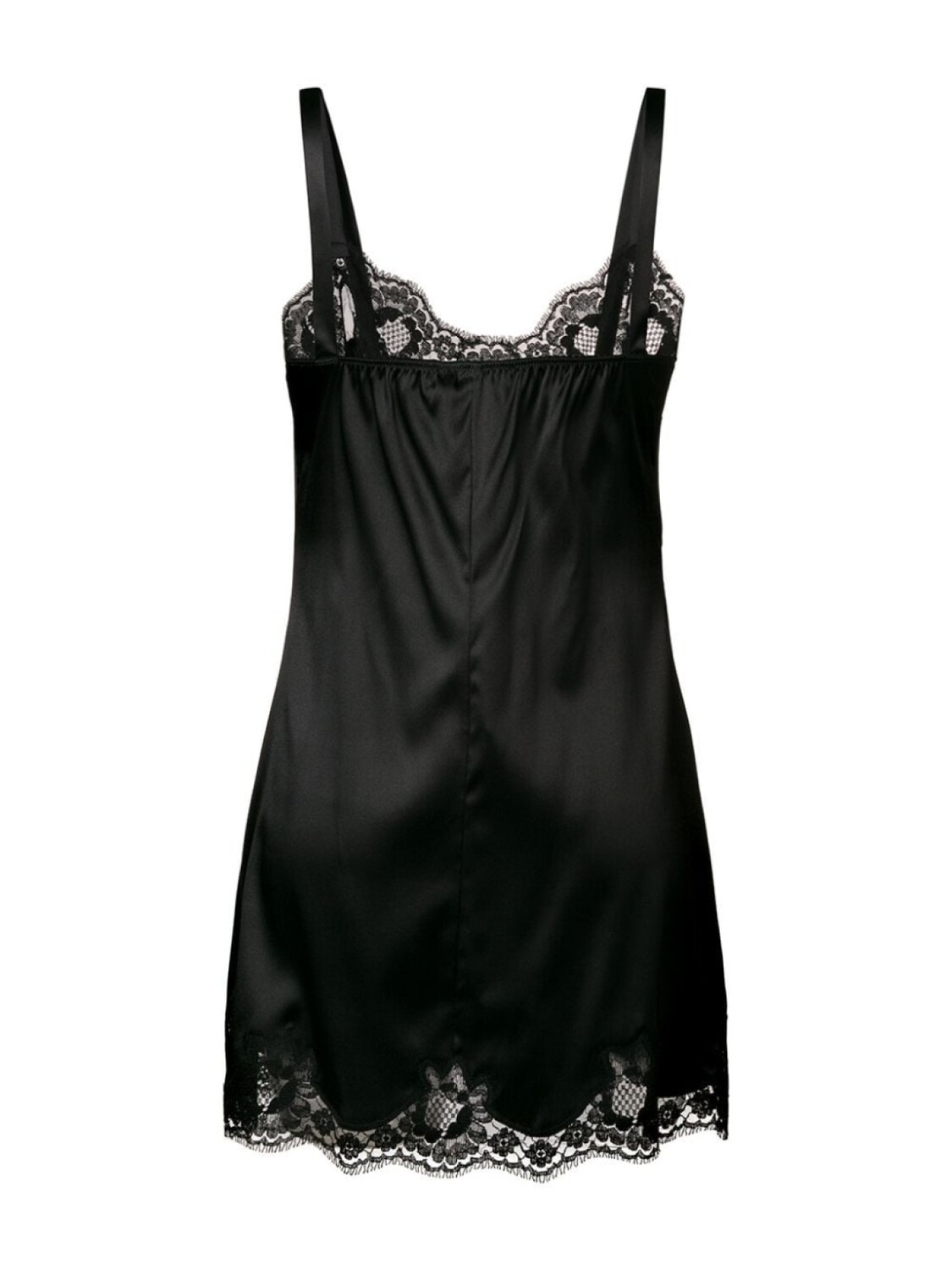 Dolce & Gabbana основан в 1985 году Доменико Дольче и Стефано Габбана. Модели итальянского бренда стали символом высокого качества и колоритного сицилийского стиля. В коллекцию вошла черная комбинация из шелкового микса с кружевом от Dolce & Gabbana (Дольче энд Габбана). Кружевной подол с фестонами и короткая длина. Примерка белья разрешена исключительно поверх собственного.