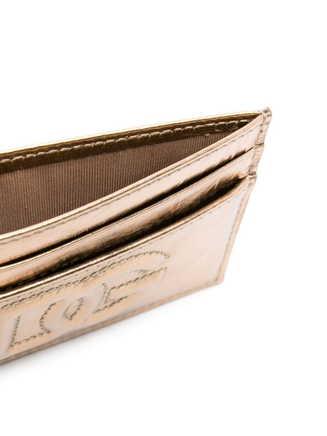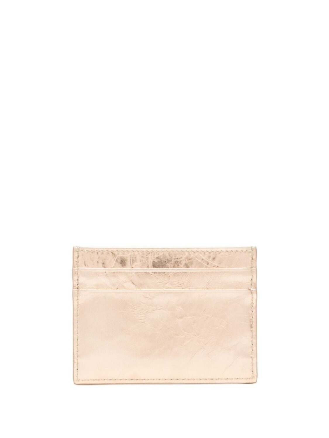 Золотистый, кожа, эффект металлик, тисненый логотип спереди и отделения для карт.