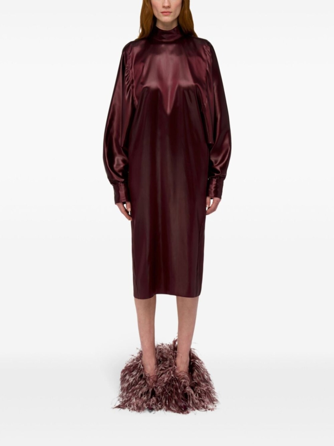 Ferragamo платье с высоким воротником, красный