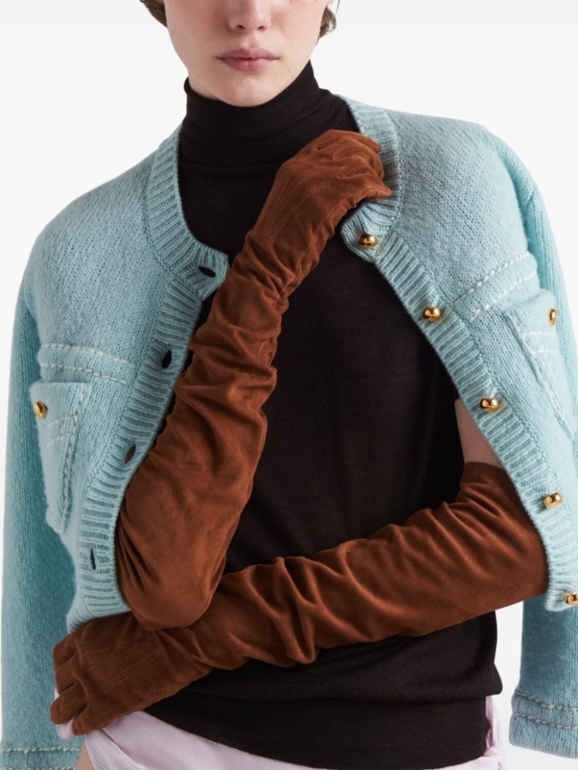 Prada замшевые перчатки с закрытыми пальцами, коричневый 100 706₽