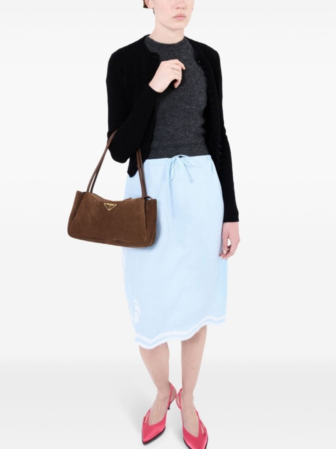 Prada кашемировый топ с короткими рукавами, серый