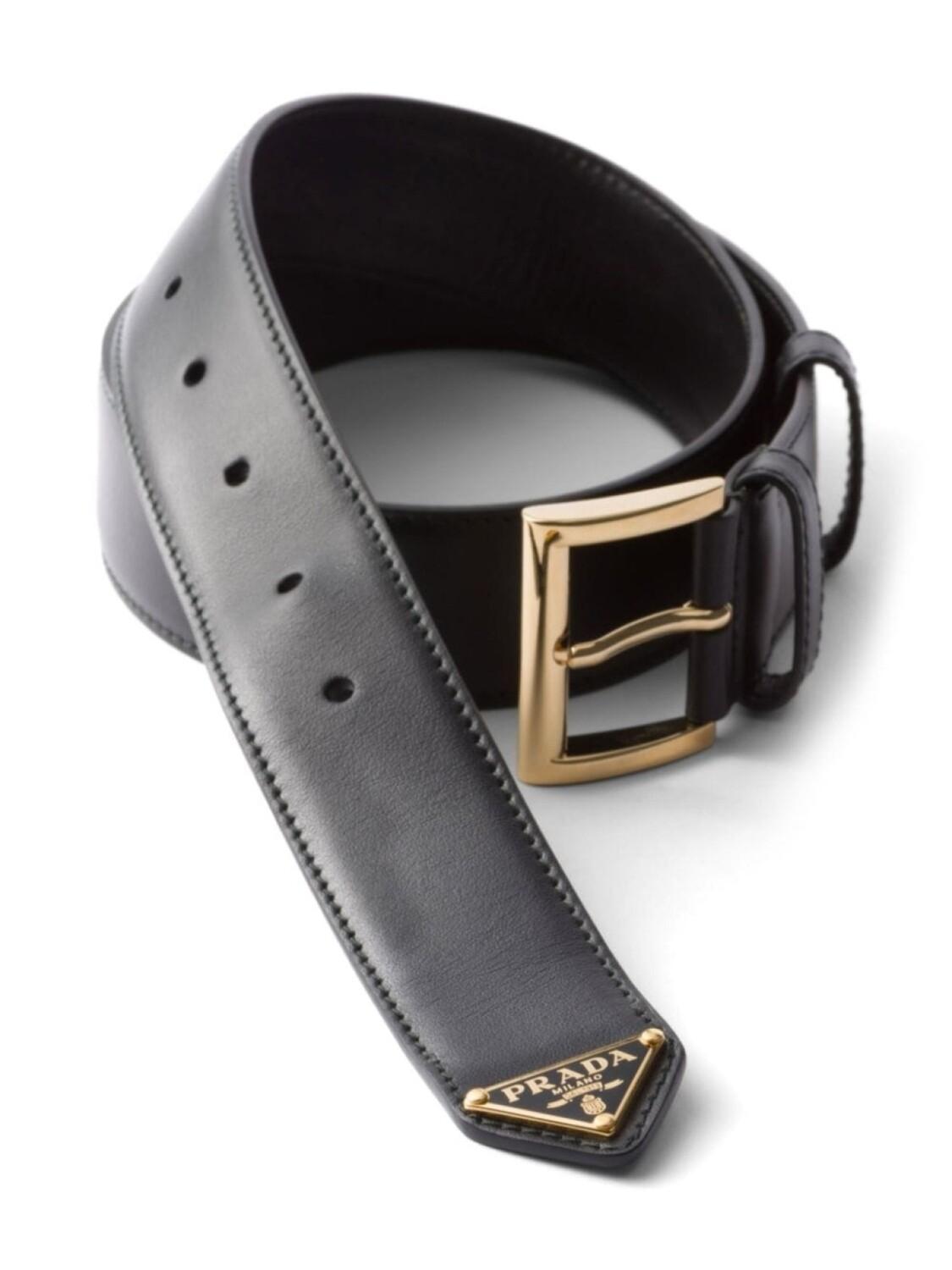Prada кожаный ремень с треугольным логотипом, черный