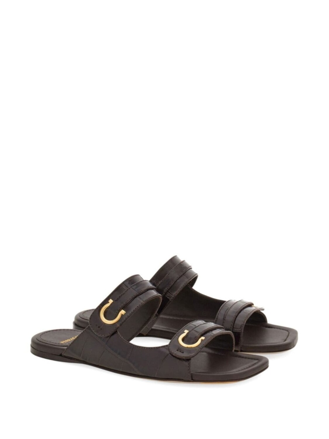 Ferragamo шлепанцы с пряжкой Gancini, коричневый