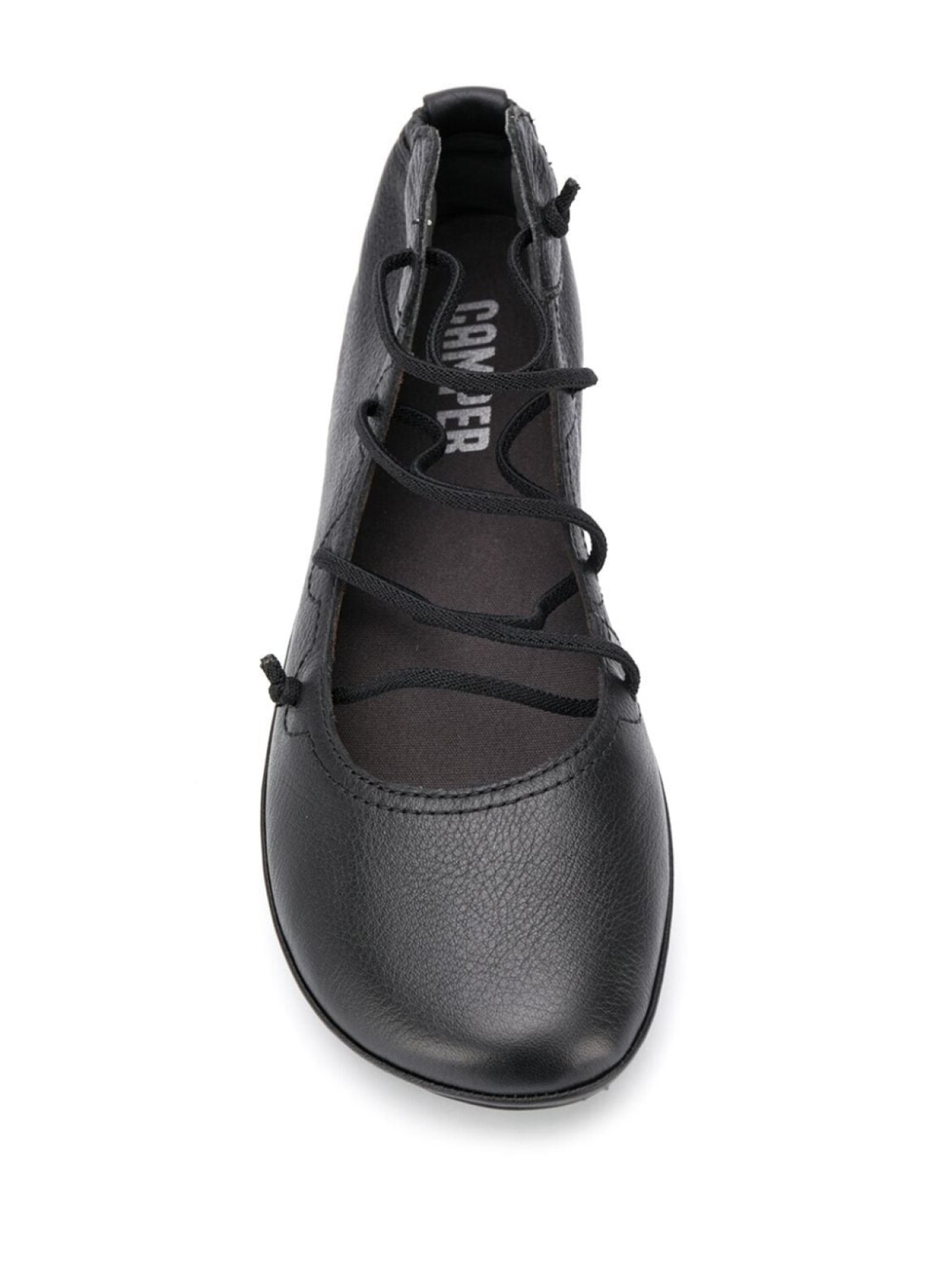 Подробнее о товаре: Балетки Nina со шнуровкой от Camper. Закругленный носок, шнуровка спереди, длина по щиколотку, зернистая фактура кожи и плоская резиновая подошва. Цвет: черный. POSITIVELY CONSCIOUS: Производитель кожи, из которой сделана эта модель, прошел аудит международного сообщества кожевников (Leather Working Group) и получил золотую медаль, поэтому вы можете не сомневаться, что делаете ответственный выбор