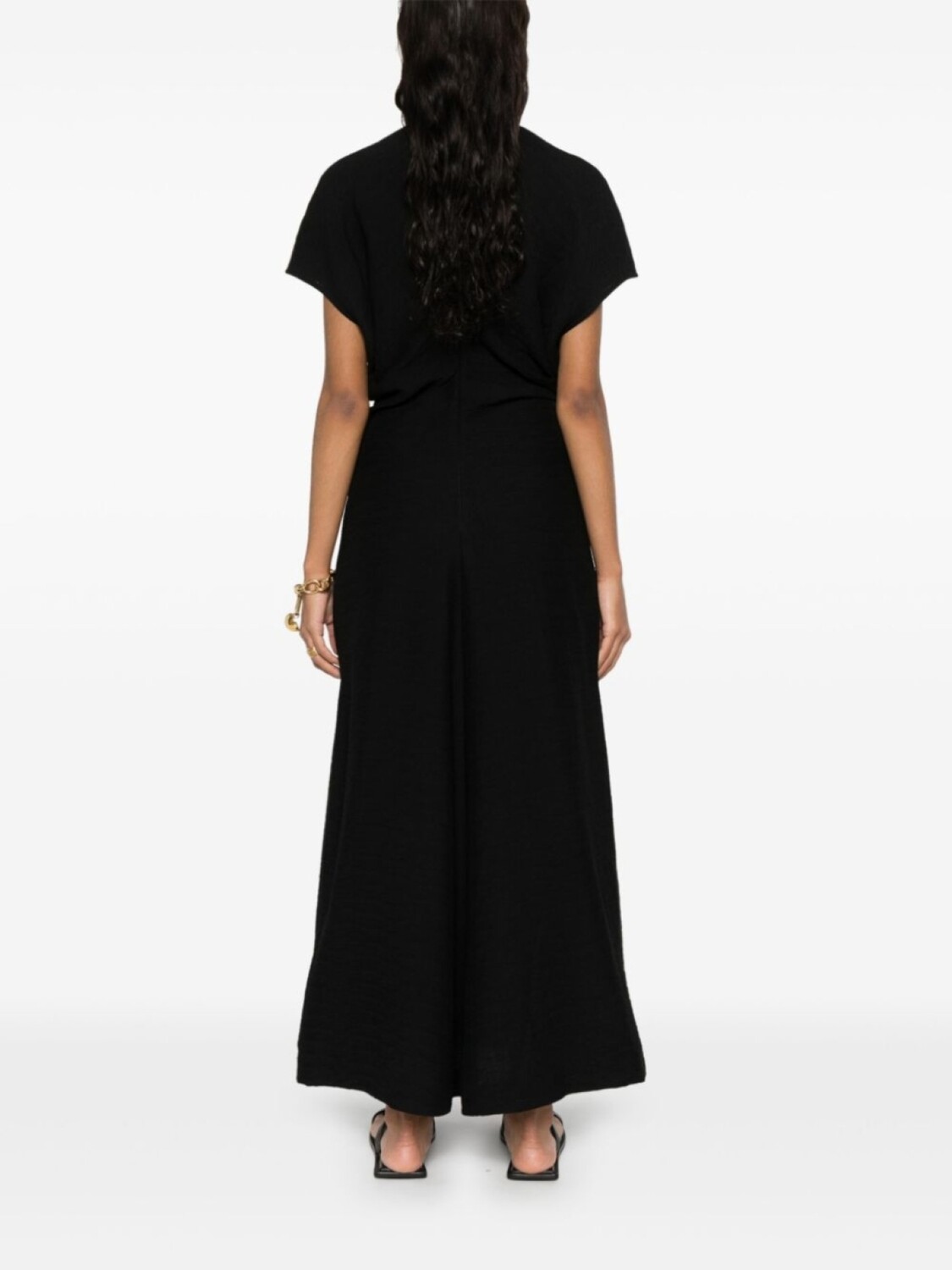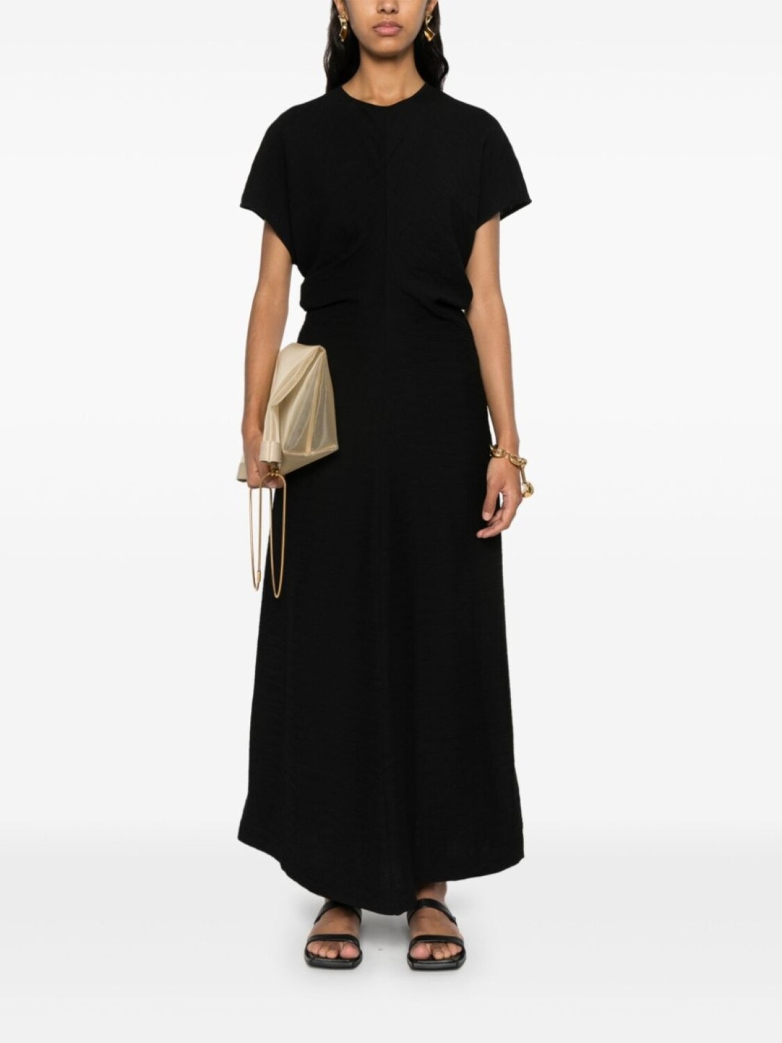 TOTEME плиссированное платье миди с широким поясом, черный 76 111₽