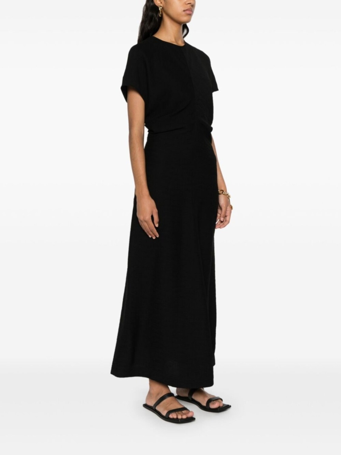 TOTEME плиссированное платье миди с широким поясом, черный