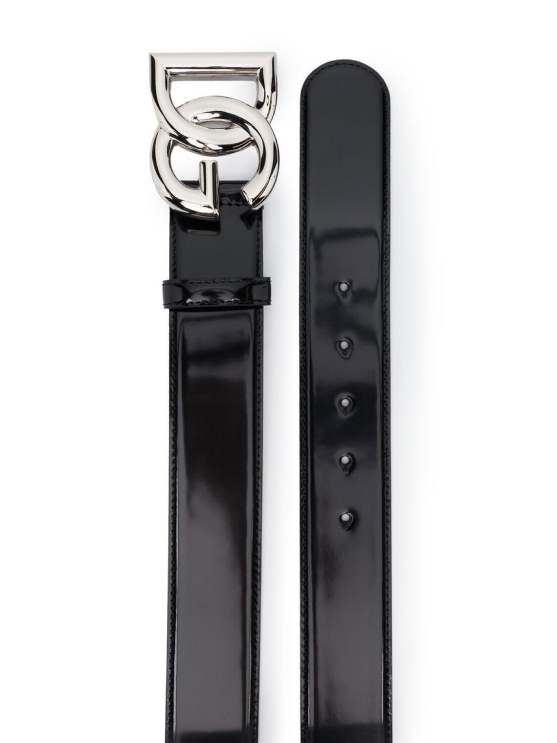 Черный, лакированная телячья кожа, серебристая фурнитура, застежка на пряжке с логотипом и регулируемый дизайн.