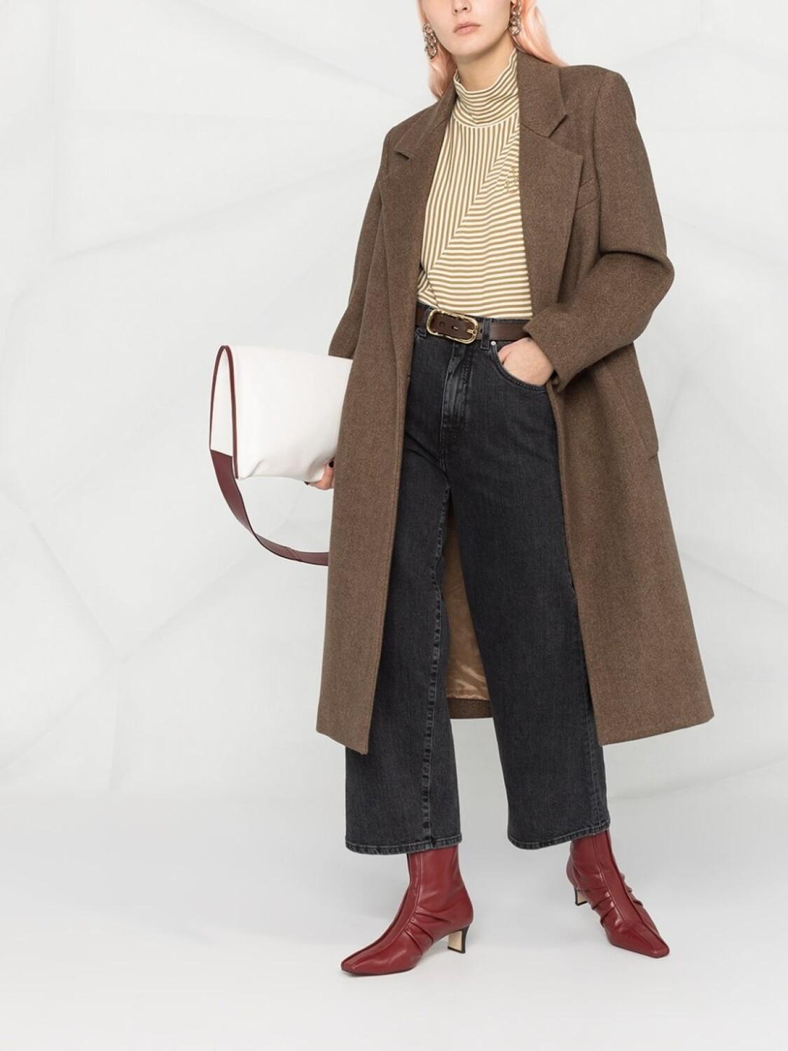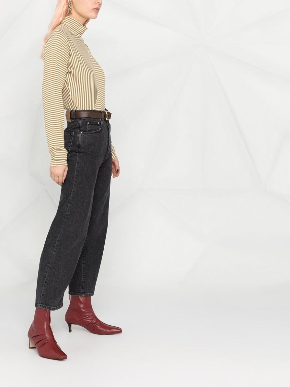 Завышенная талия, петли для ремня, застежка на молнии и пуговице спереди, классическая пятикарманная модель, свободный крой и укороченная длина.