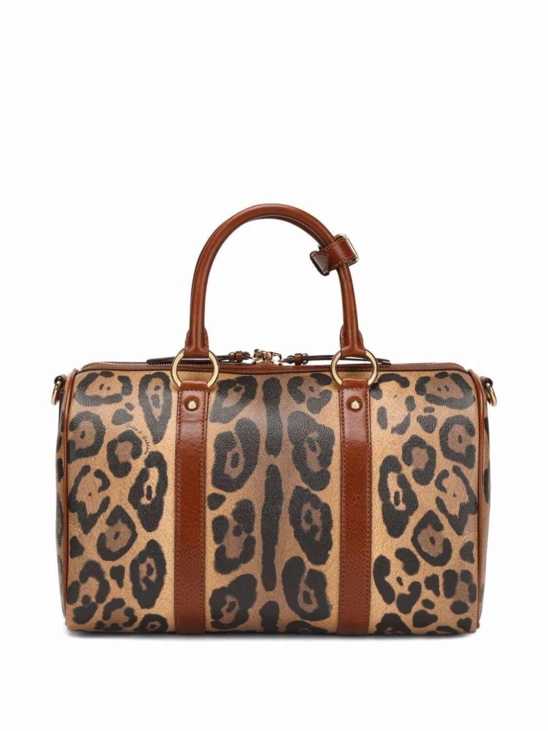 Сплошной леопардовый принт, металлический логотип, золотистая фурнитура, висячий замок, кожаная бирка, две закругленные ручки, съемный регулируемый ремень на плечо, застежка на молнии сверху, основное отделение и внутренний карман на молнии.