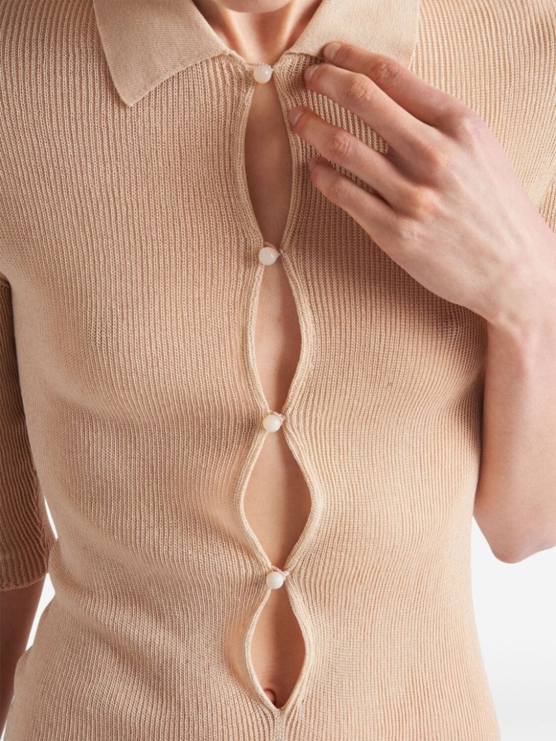 Prada мини-платье из хлопка в рубчик, нейтральный цвет