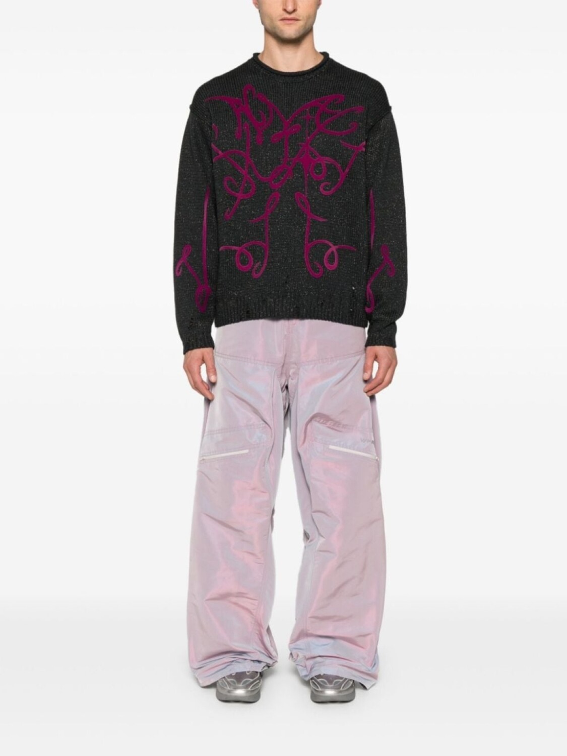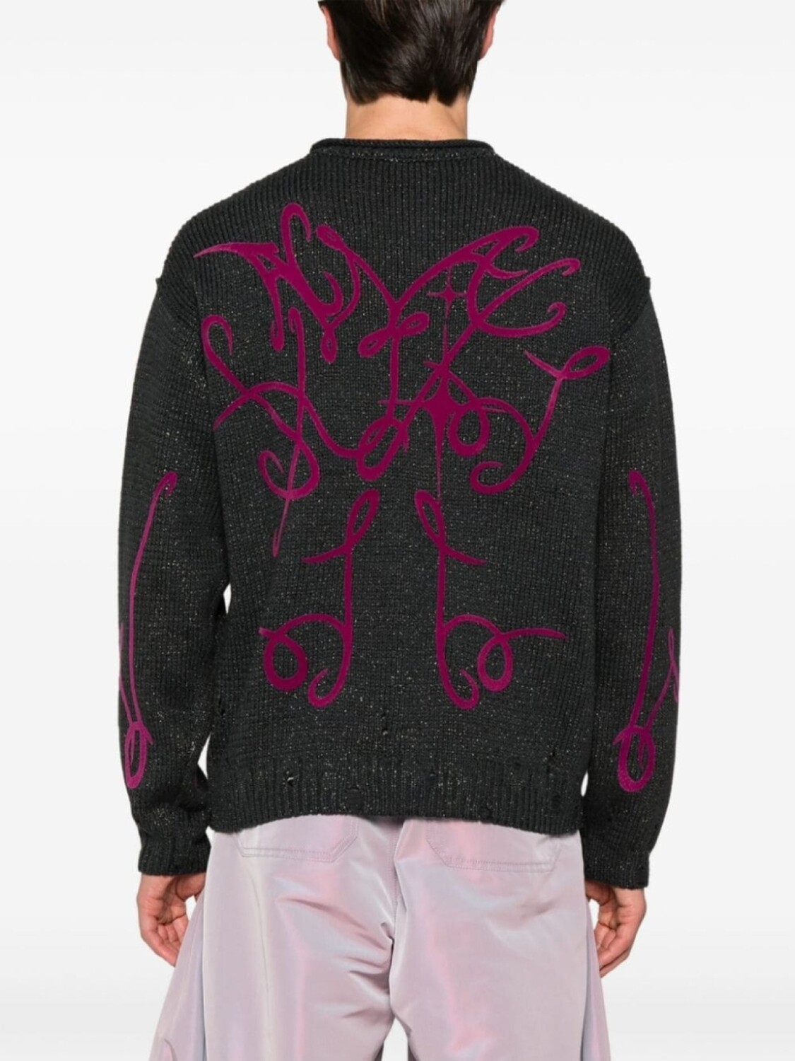 Темно-серый хлопковый микс металлизированная нить трикотажная конструкция эффект потертости сезонный флокированный логотип принт закатанный круглый вырез спущенное плечо длинные рукава ребристые манжеты и подол Мы сотрудничаем с Good On You — независимым агентством, которое оценивает, как бренды работают с точки зрения их воздействия на планету, людей и животных, с многокритериальным рейтингом, упрощенным до пятибалльной шкалы. Чтобы получить наш лейбл сознательности, крупные бренды должны набрать не менее четырех из пяти («Хорошо»), в то время как более мелкие бренды должны набрать не менее трех из пяти («Это начало»). Этот товар принадлежит бренду, получившему оценку три из пяти («Это начало») от Good on You на момент его добавления на FARFETCH. Обратите внимание, что это рейтинг на уровне бренда, и он не гарантирует, что этот продукт изготовлен из сознательных материалов. Узнайте больше о том, что делает продукт сознательным, на нашей странице критериев сознания