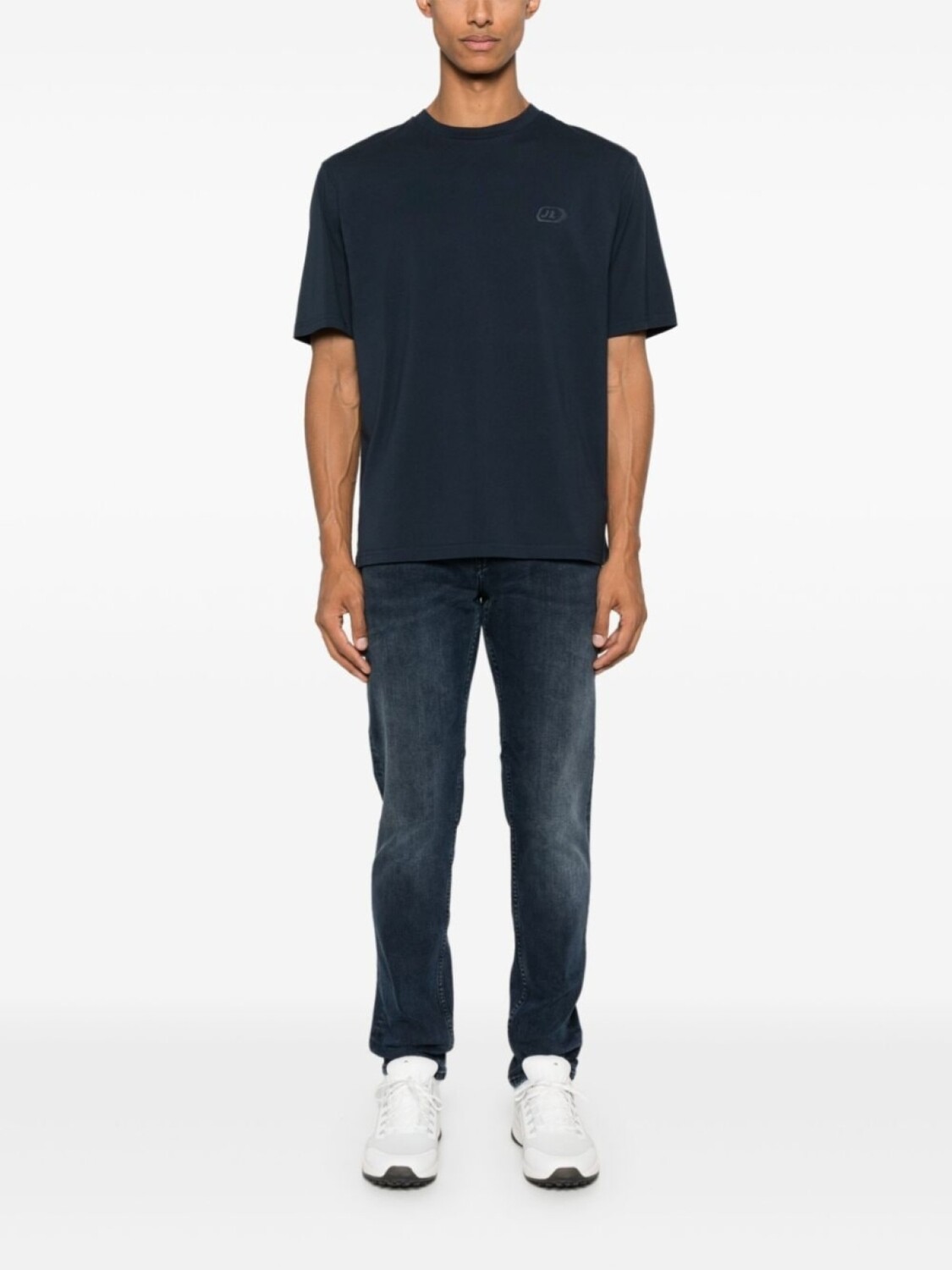 Подробнее о товаре: • темно-синий • смесовый органический хлопок • эластичный материал • деним • потайная застежка на молнии и пуговицах • декоративные складки • петли для ремня • классическая пятикарманная модель • нашивка с логотипом сзади • узкий крой • Ответственный выбор: В составе этого товара есть органический хлопок. Его производитель не использует химические вещества, пестициды и искусственные удобрения и внедряет методы, которые помогают сохранить биоразнообразие, улучшают качество почвы и сокращают потребление воды.
