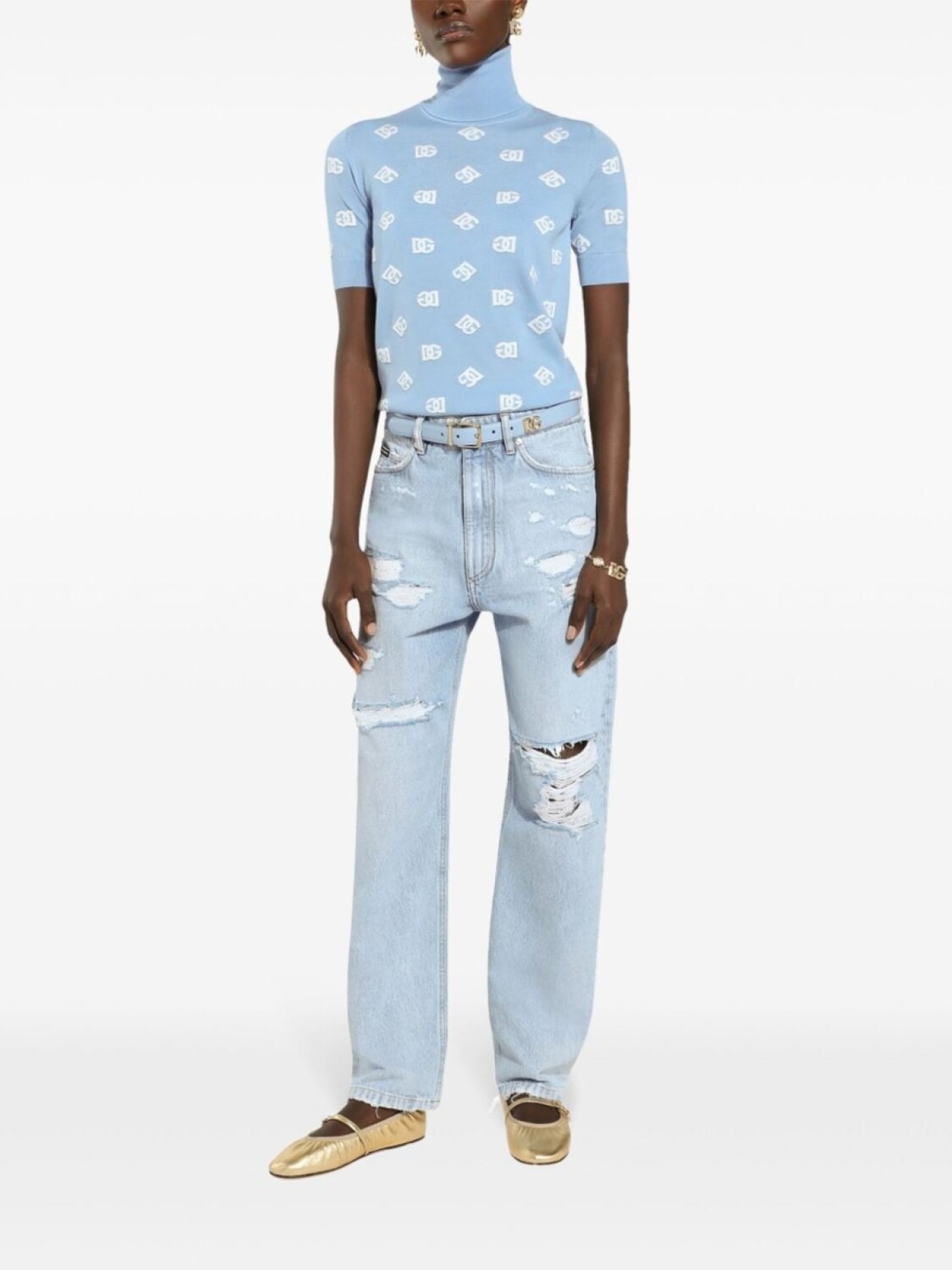 Dolce & Gabbana топ с высоким воротником и вышивкой, синий 74 256₽