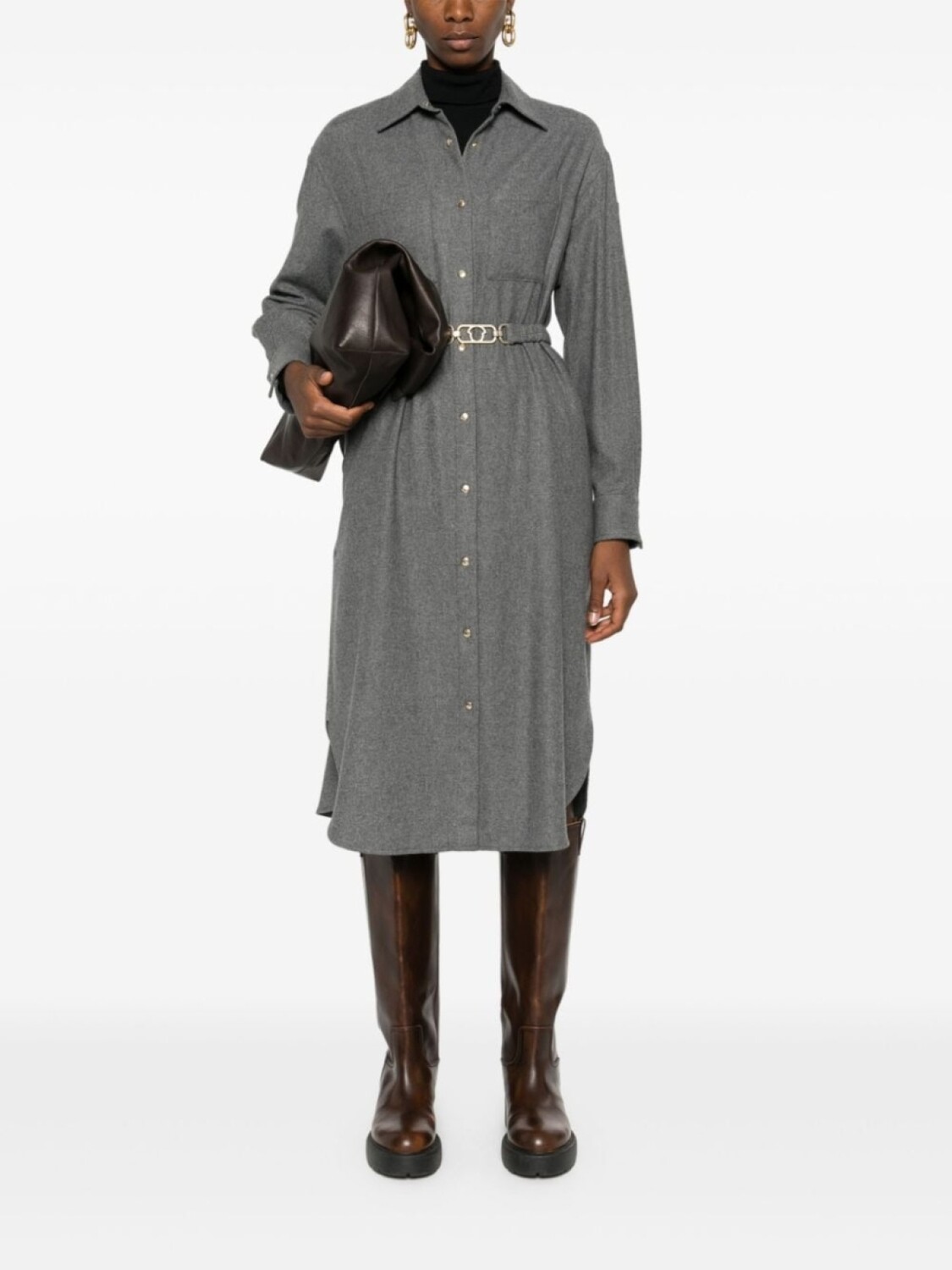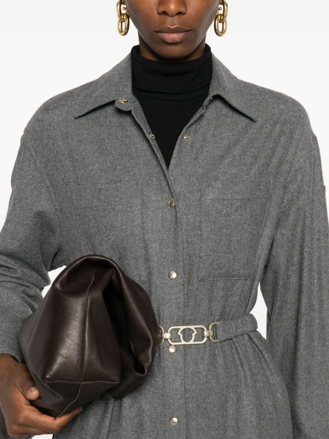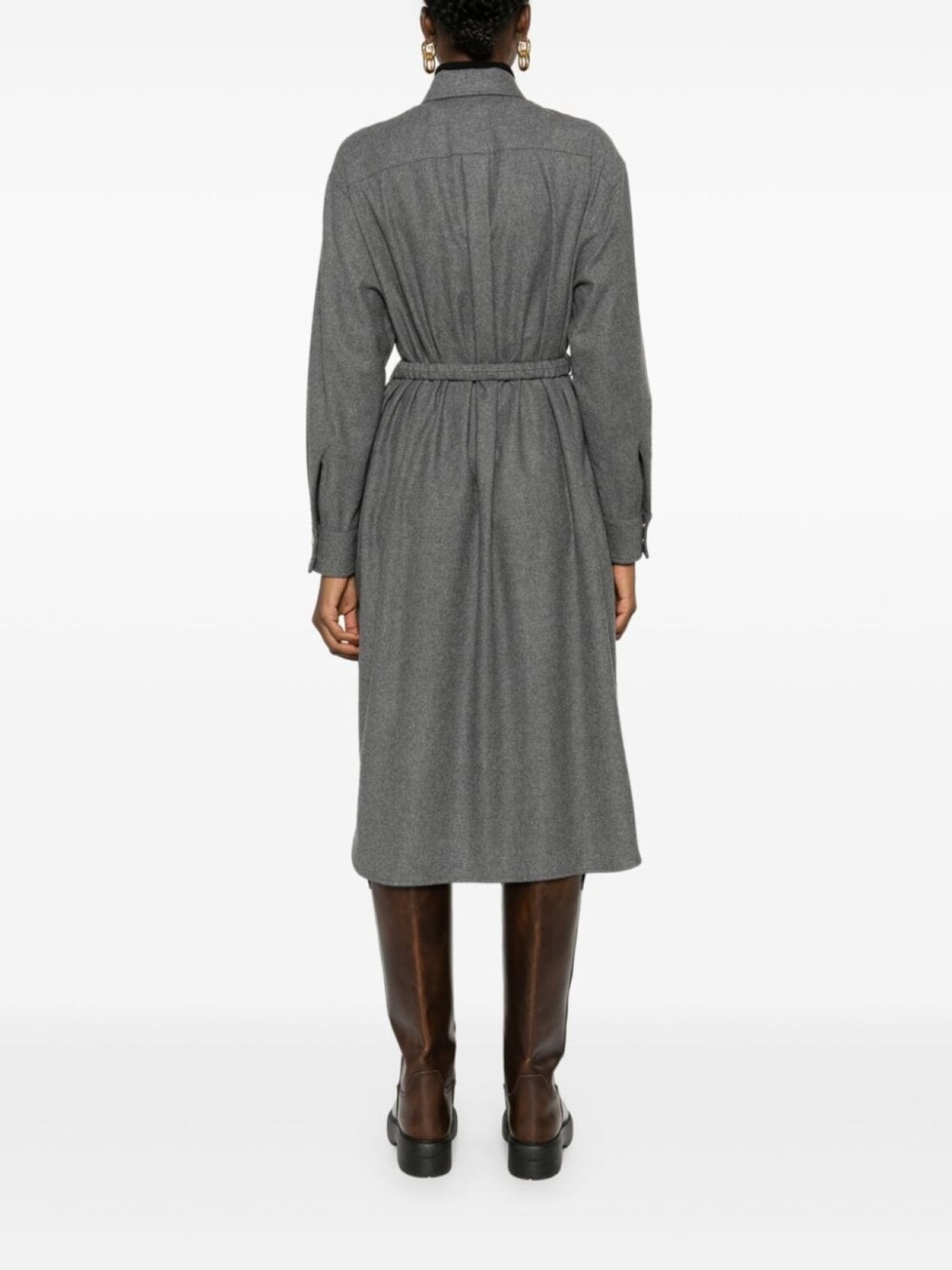 Подробнее о товаре: • серый металлик • смесовая шерсть • ткань с твиловым переплетением • эффект меланж • нашивка с логотипом на рукаве • классический воротник • застежка на кнопках спереди • длинные рукава • манжеты с застежкой на кнопки • два накладных кармана на груди • два вшитых кармана по бокам • петли для ремня • регулируемый ремень • закругленный подол • средней длины