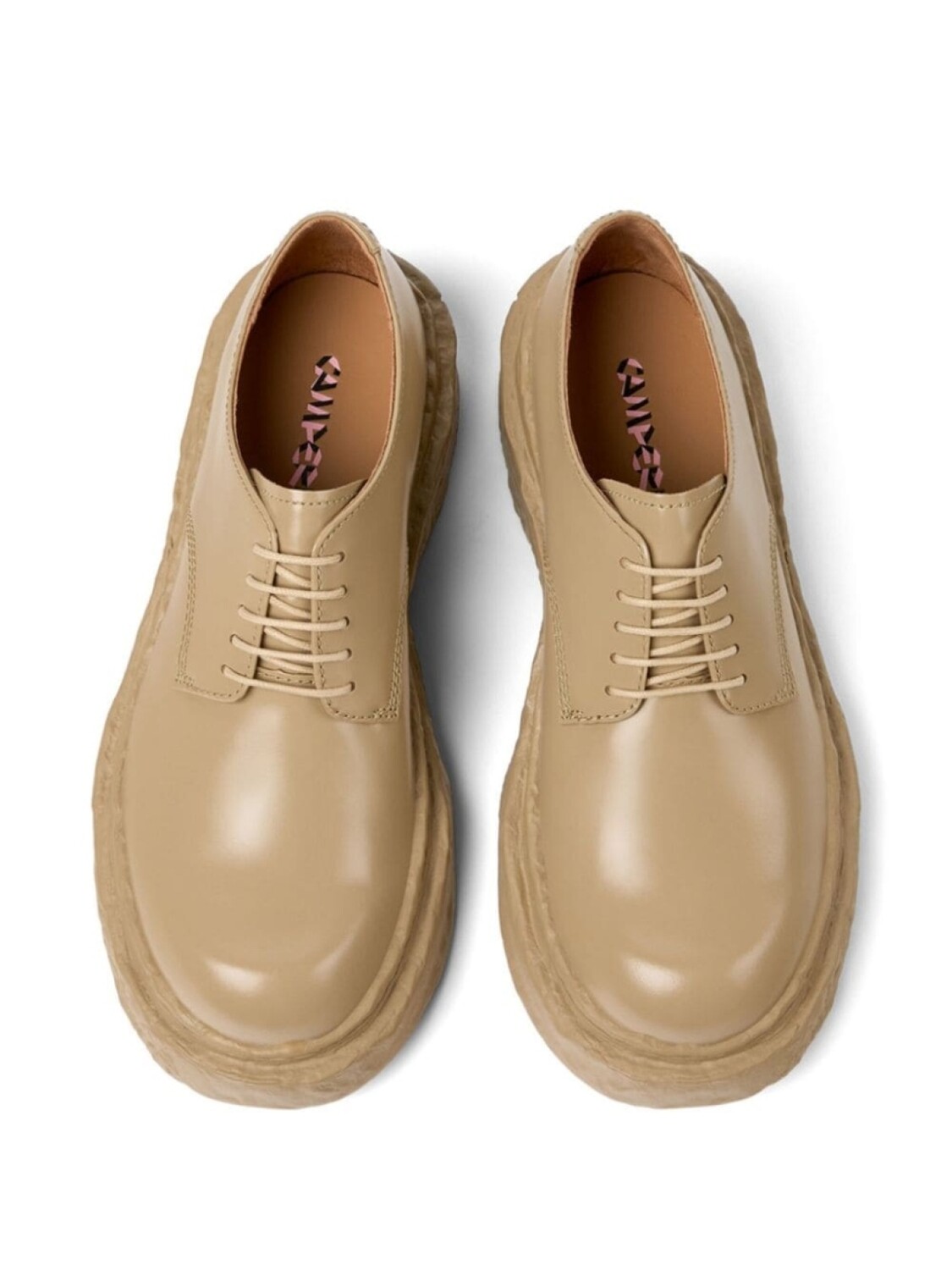 Бежевый, кожа, гладкая текстура кожи, стелька с логотипом, шнуровка спереди, закругленный носок, блочный каблук, Это унисекс-модель. Обратите внимание, что для нее используется мужская размерная сетка.