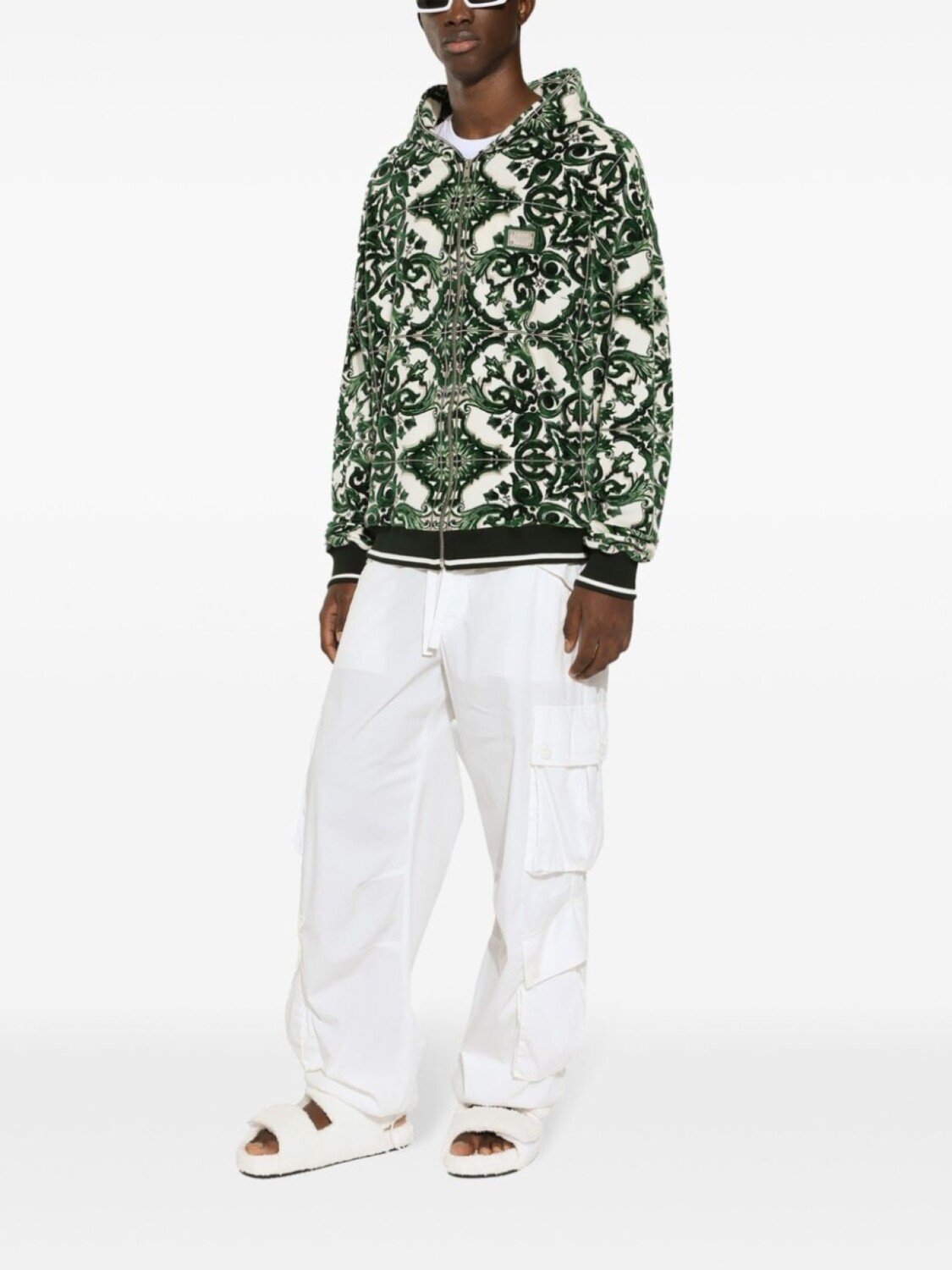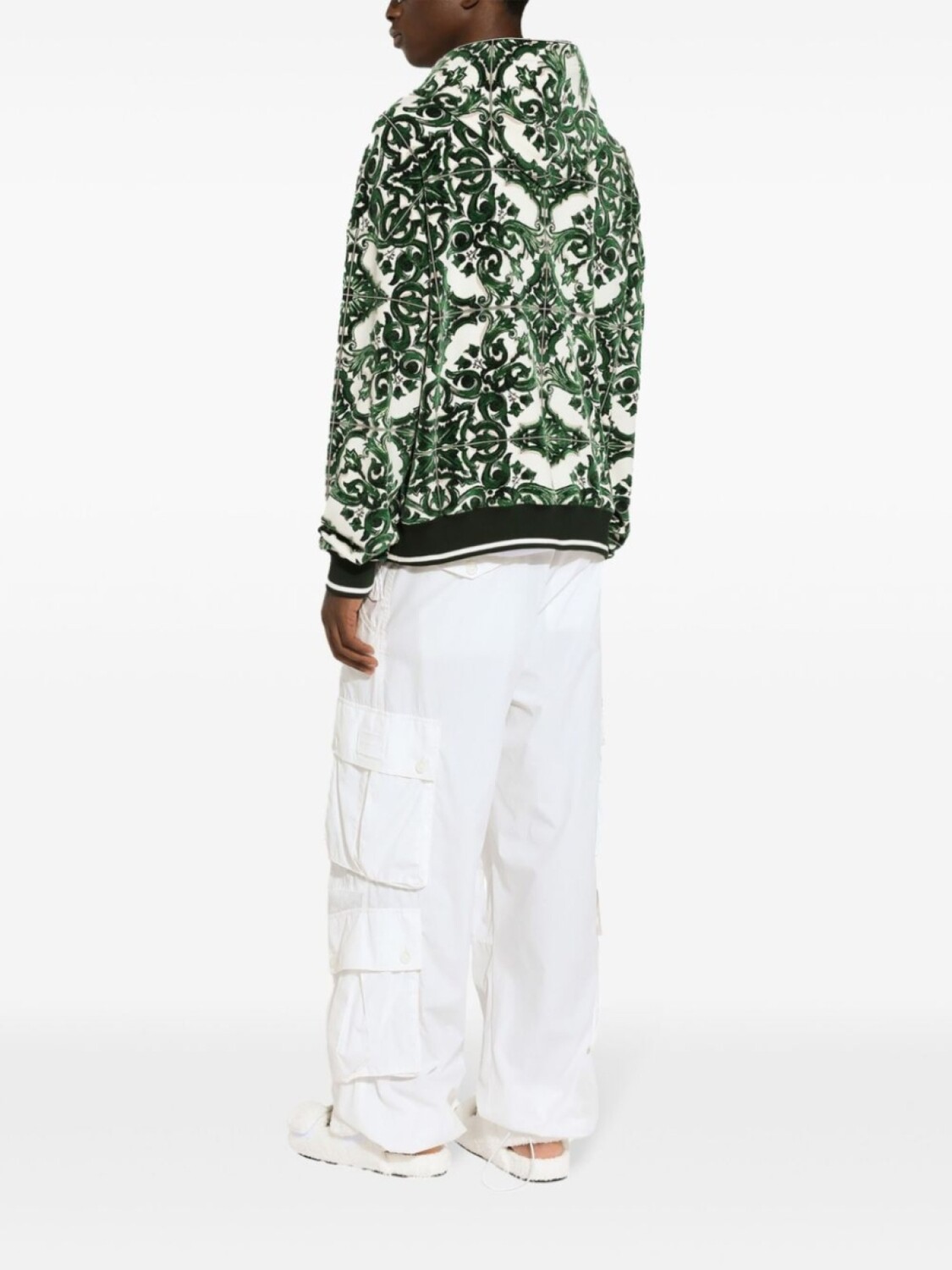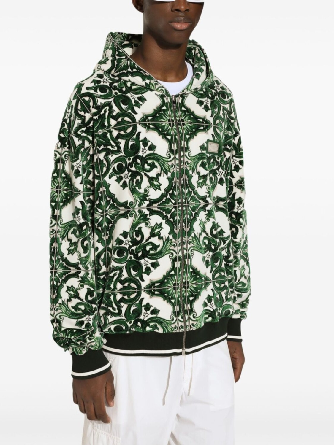 Dolce & Gabbana худи на молнии с принтом Majolica, зеленый